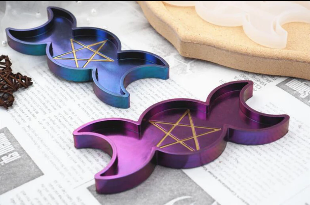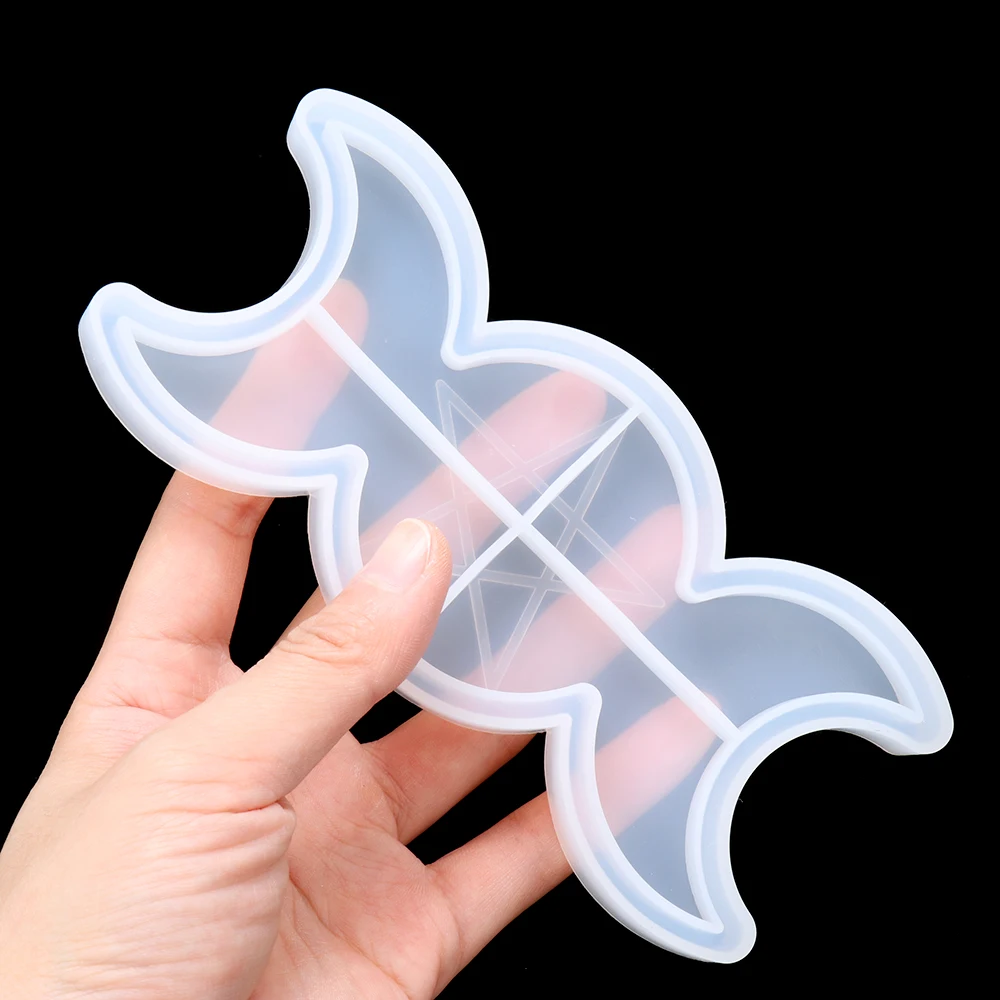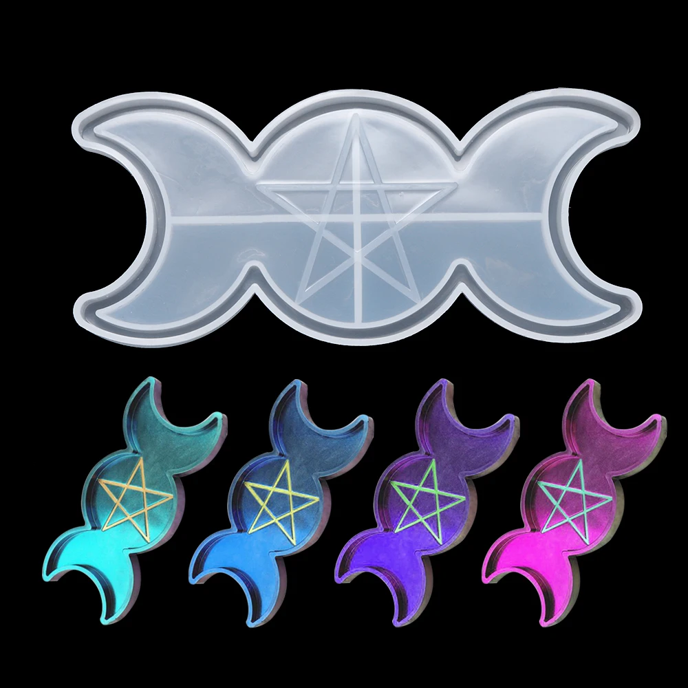 1PC Handmade Moon Star Phase Box Candle Tray Coaster Resin Casting Molds Triple Goddess Pentagrams Mould Jewelry Making Tools