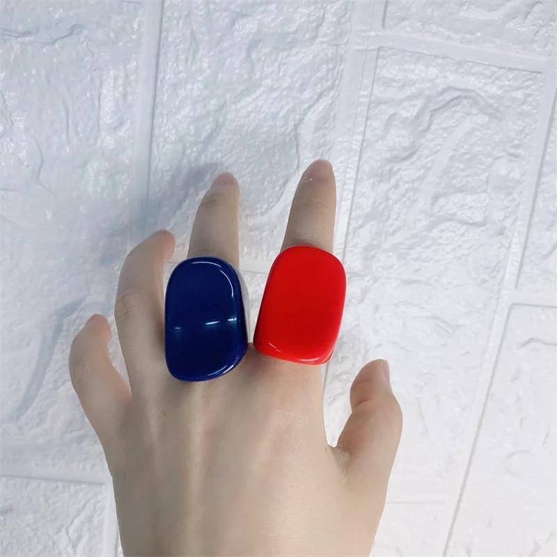 • New Statement Resin Rings Ins Handmade Geometric Transparent Candy Color Ring For Female Jewelry Korea Acrylic Jewellery