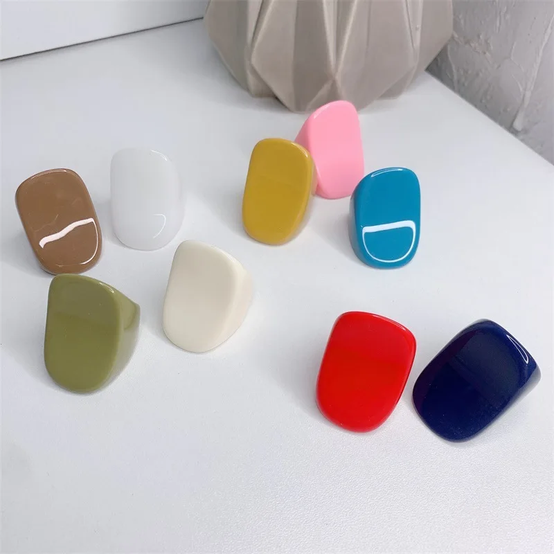 New Statement Resin Rings Ins Handmade Geometric Transparent Candy Color Ring For Female Jewelry Korea Acrylic Jewellery