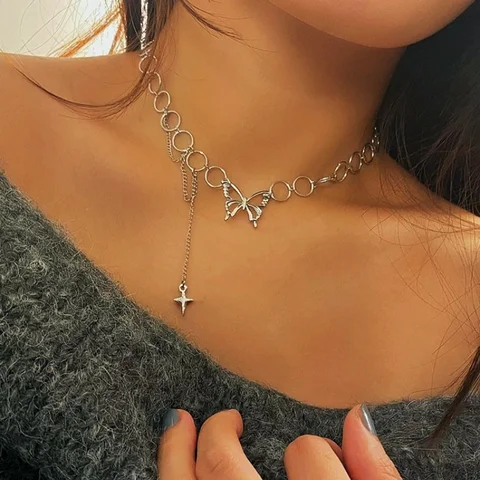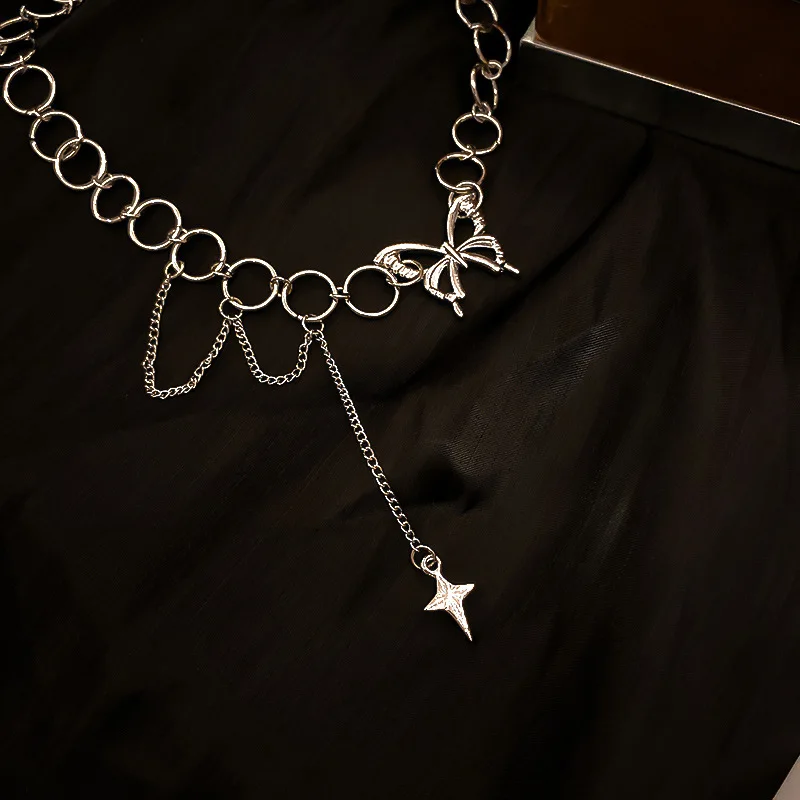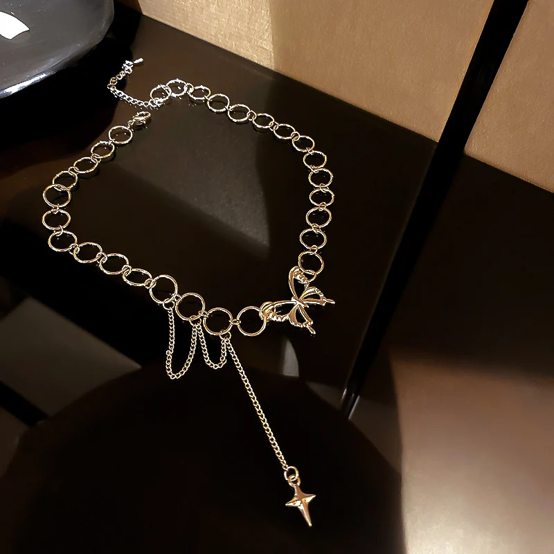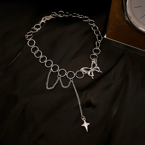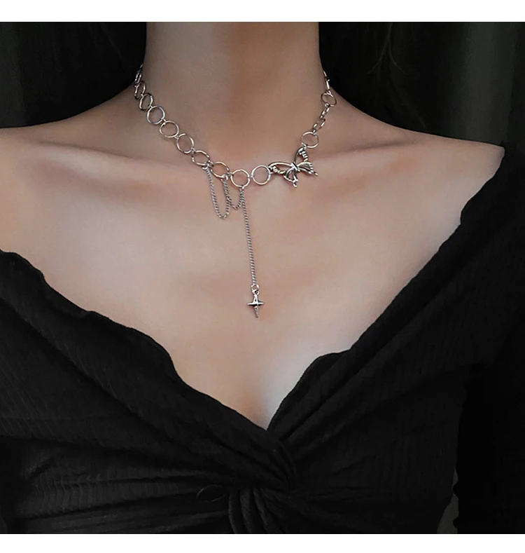 • Harajuku Goth Hollow Butterfly Cross Long Tassel Punk Clavicle Chain Choker Necklace For Women Egirl Street Fashion Jewelry