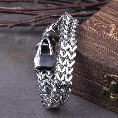 Name:Never Fade Rock Viking Wolf Charm Bracelet Men's Stainless Steel Mesh Chain Gold Wolf Punk Bracelets Biker Jewelry