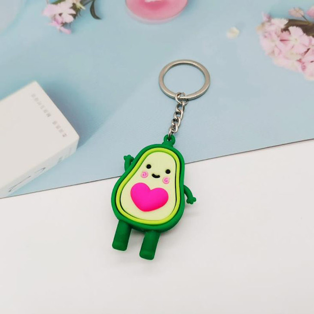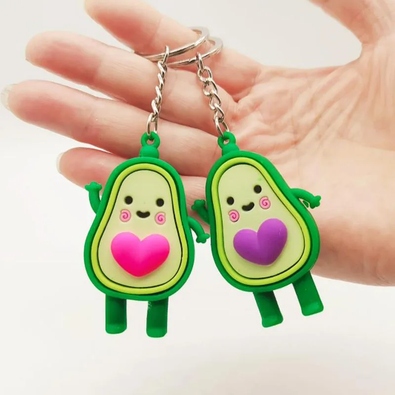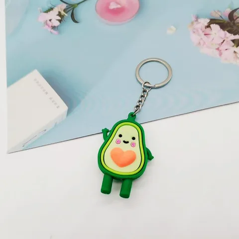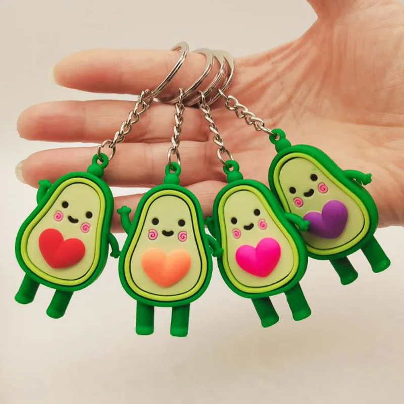 Cute Simulated Fruit Avocado Keychain 3D Soft Resin Smiling Avocado Keychains Couple Jewelry Women Fashion Christmas Small Gift
