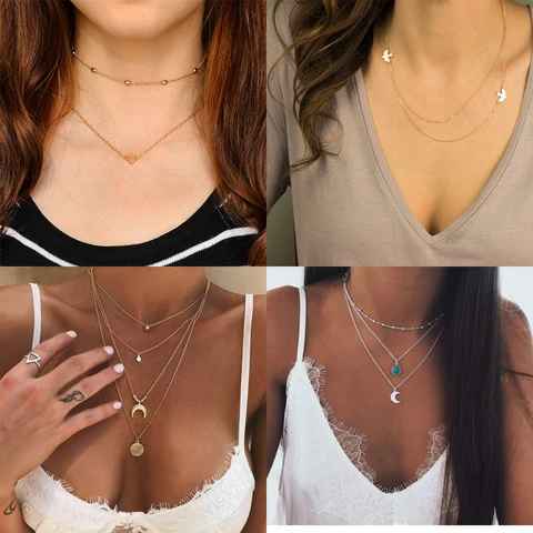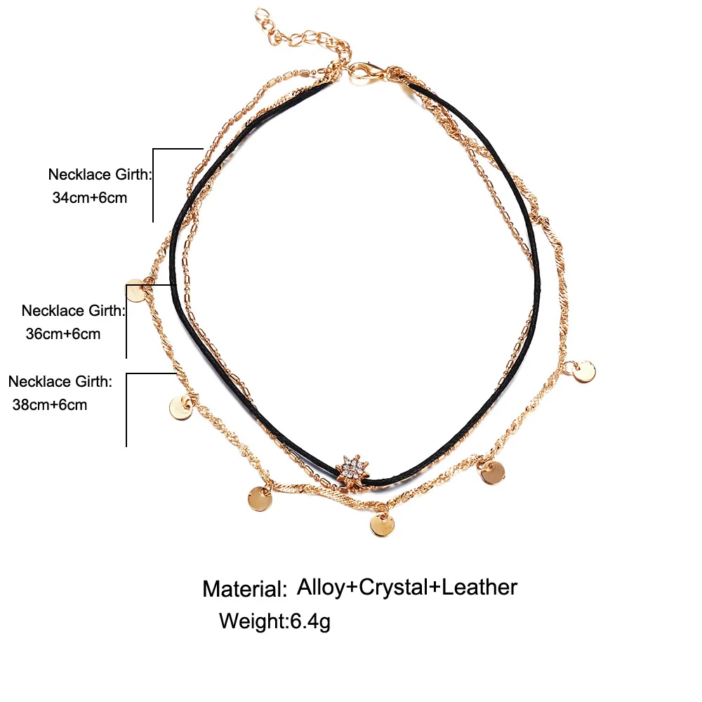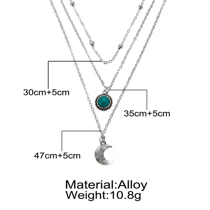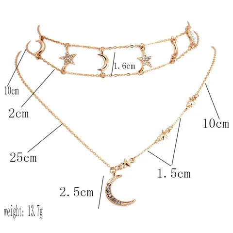 • Five-pointed Star Moon Star Pendant Multilayer Necklace Vintage Moon Sun Clavicle Chain Jewelry Gift For Women