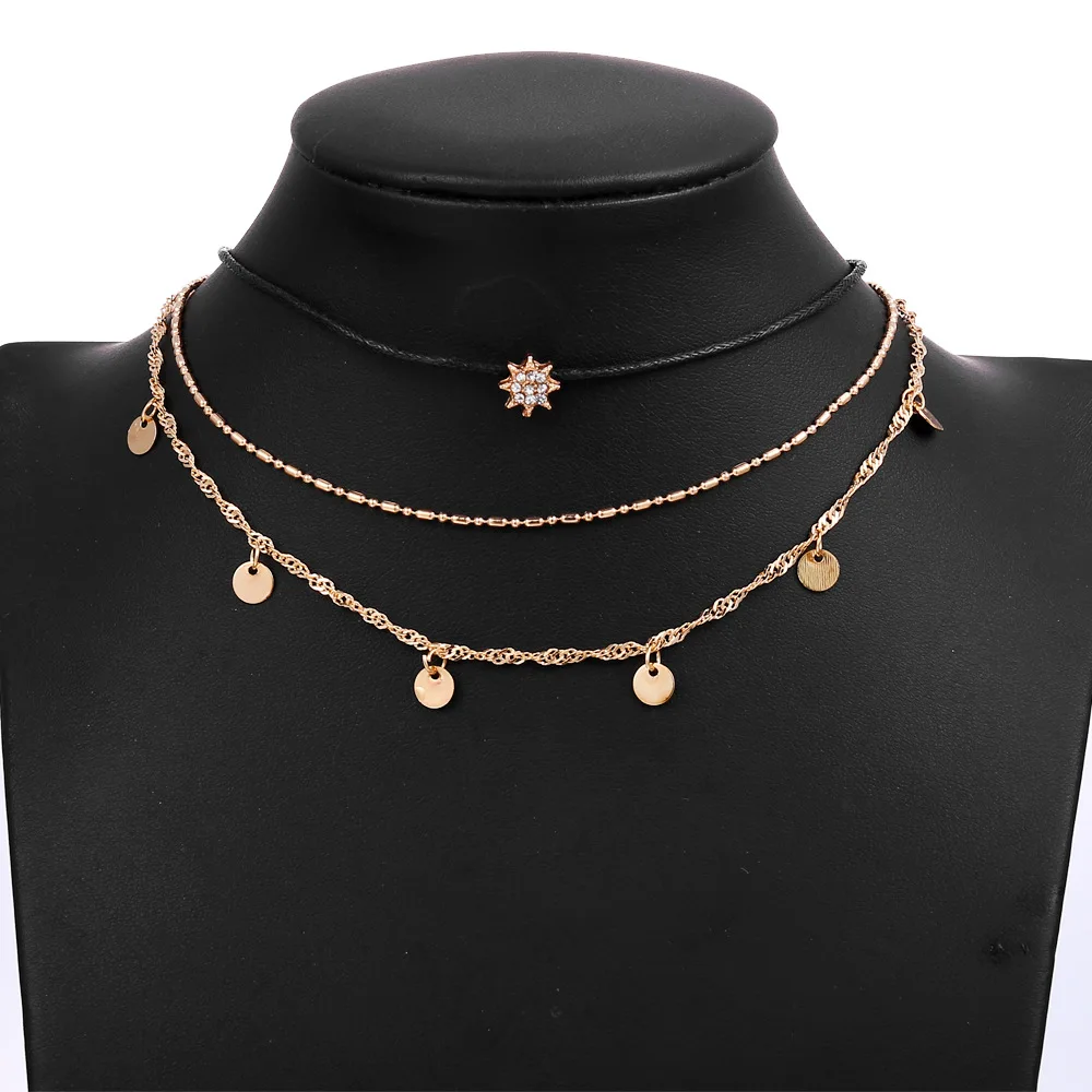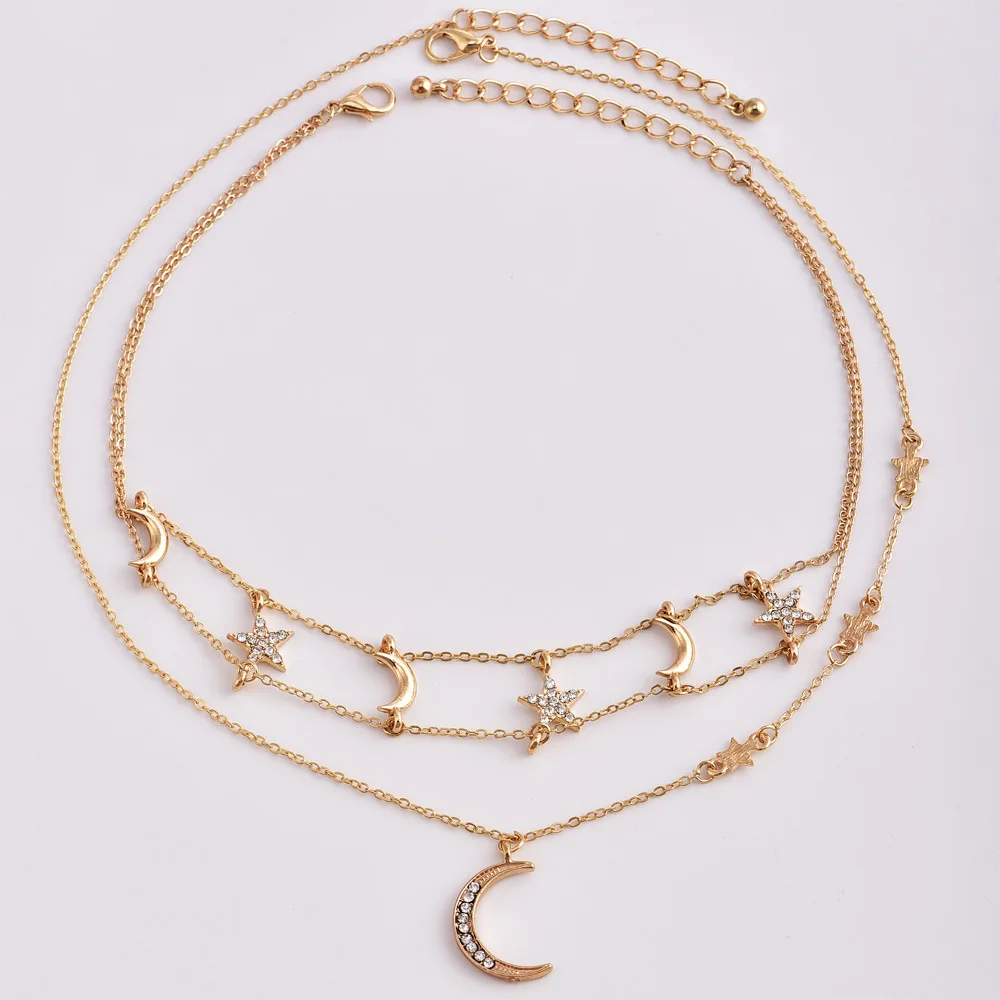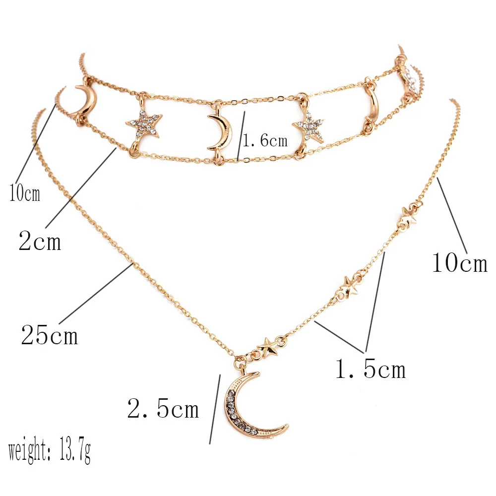 Fashion Five-pointed Star Moon Star Pendant Multilayer Necklace Vintage Moon Sun Clavicle Chain Jewelry Gift For Women