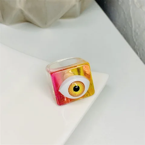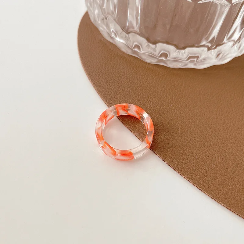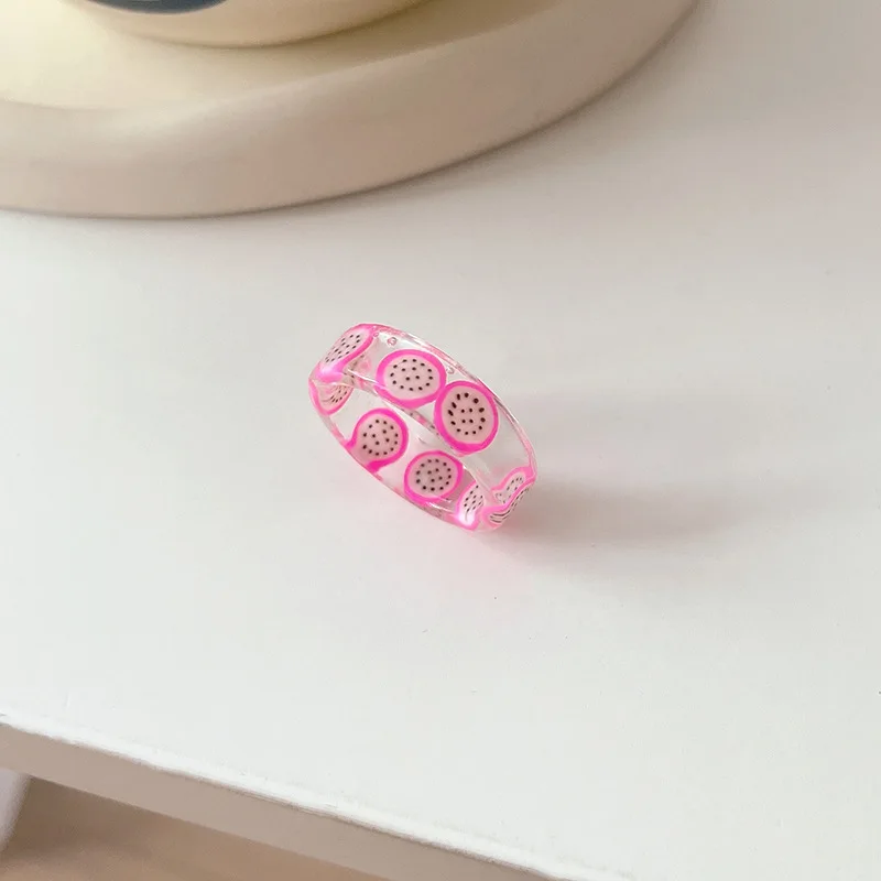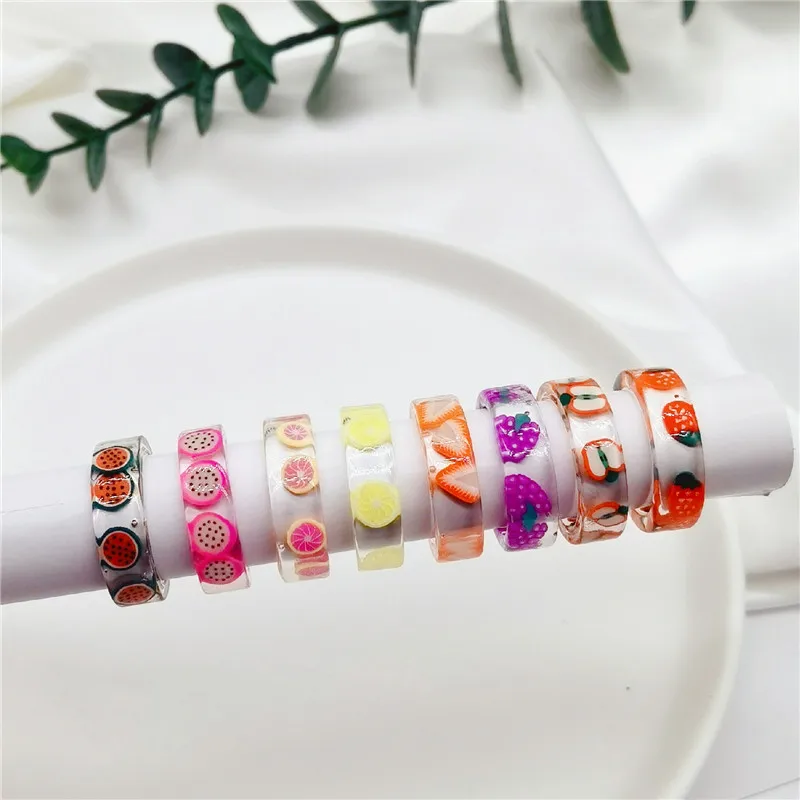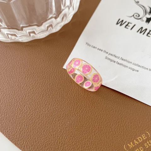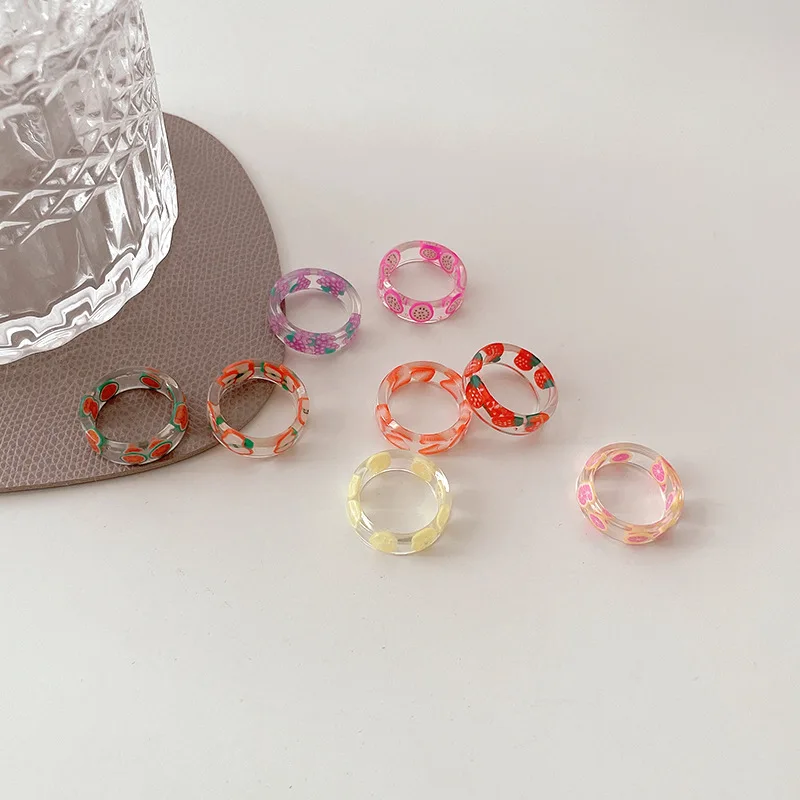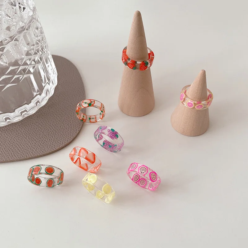 • Korean Colorful Fashion Resin Fruit Ring Acrylic Geometric Round Rings for Women Beach Party Wedding Jewelry Anillos