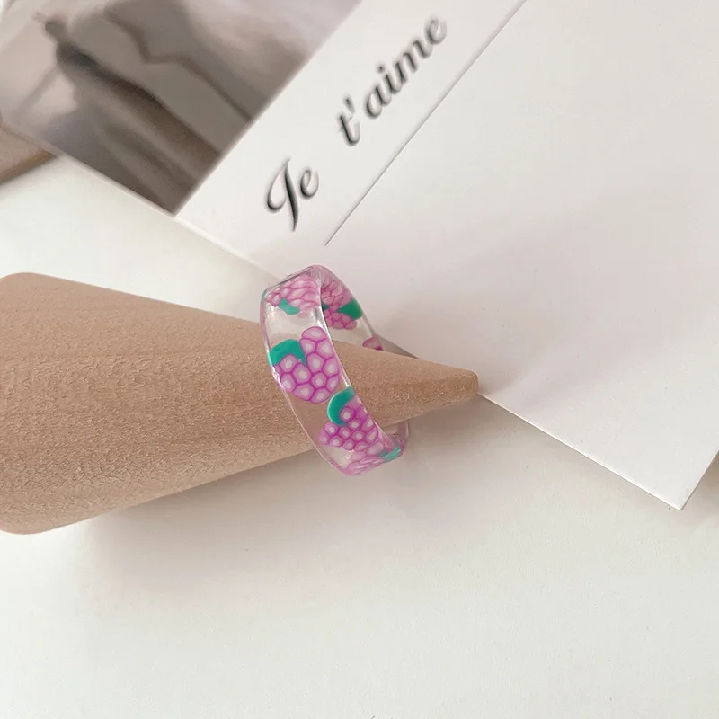 Korean Colorful Fashion Resin Fruit Ring Acrylic Geometric Round Rings for Women Beach Party Wedding Jewelry Anillos