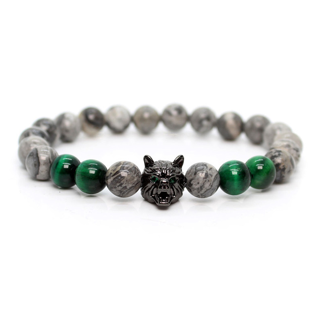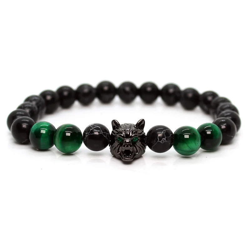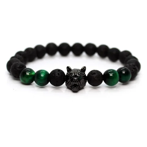 Green Tiger Stone Lava Stone Wolf Bracelet Handmade Bracelets For Men Women Beads Jewellery Charm Armband Friendship Gifts