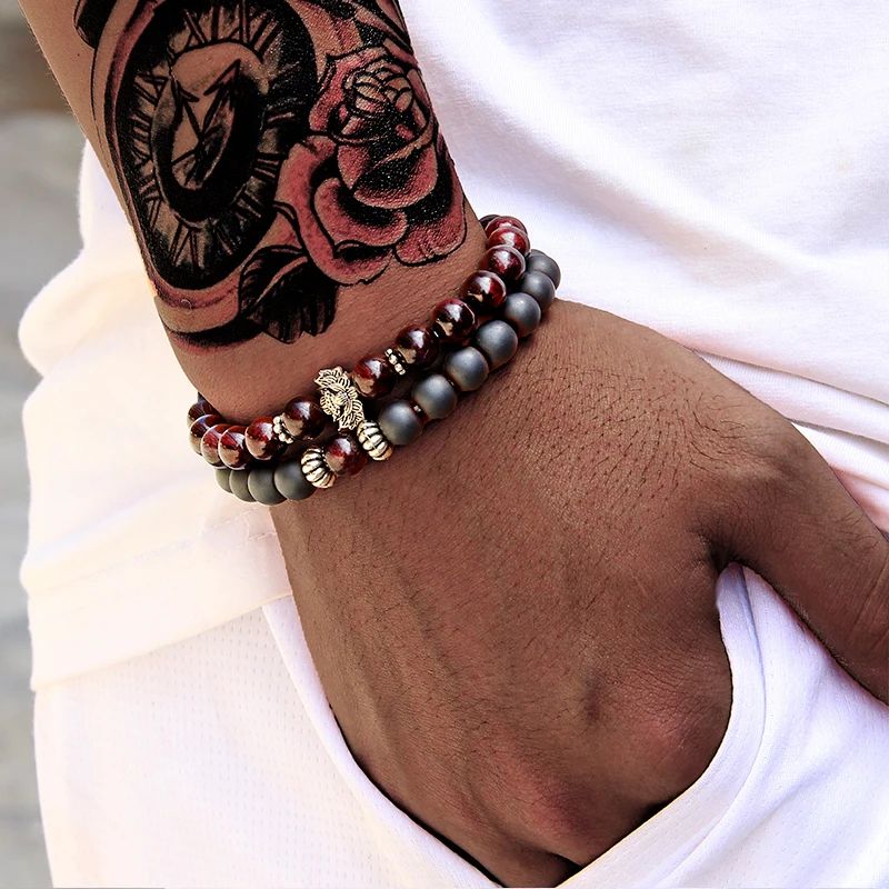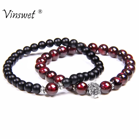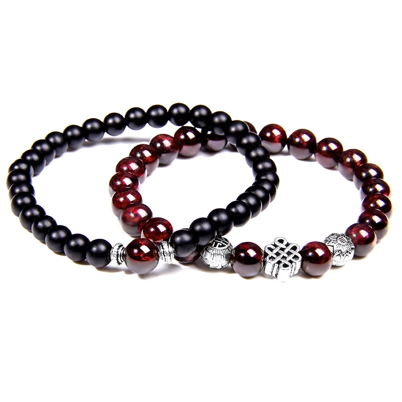 Men Bracelets Natural Garnet Beads Bracelet For Women Red Stone Bracelet Silver-platedCharm Yoga Balance Pulsera Couples Jewelry Gift