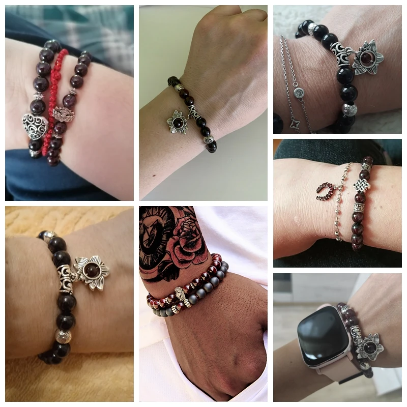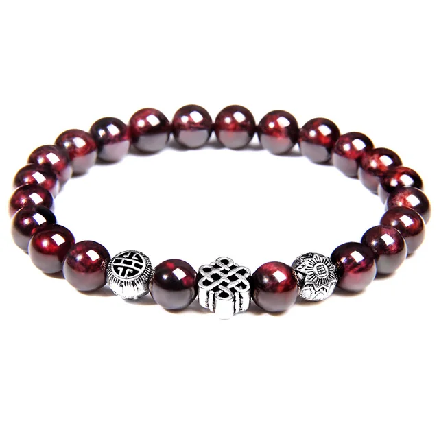 • Bracelets Natural Garnet Beads Bracelet For Women Red Stone Bracelet Silver-plated Yoga Balance Pulsera Couples Jewelry Gift