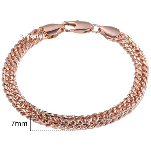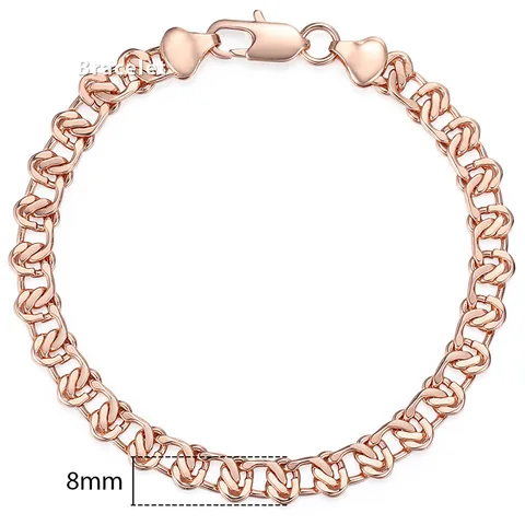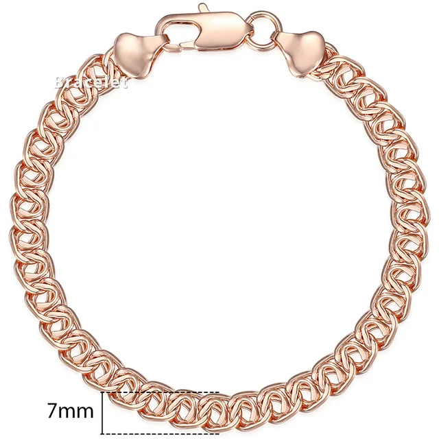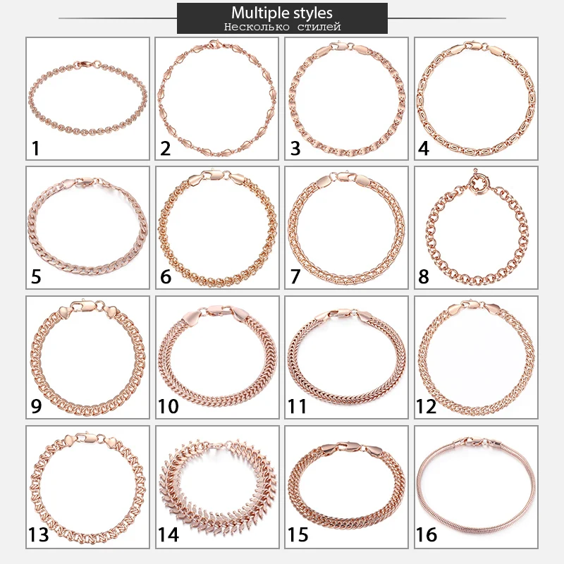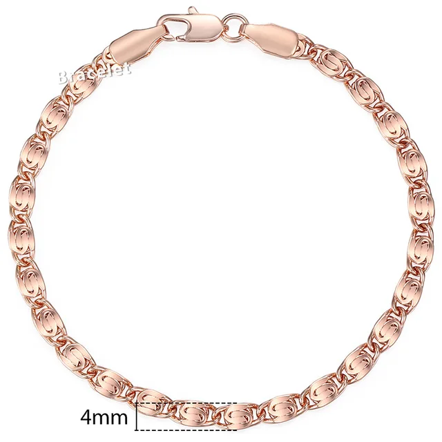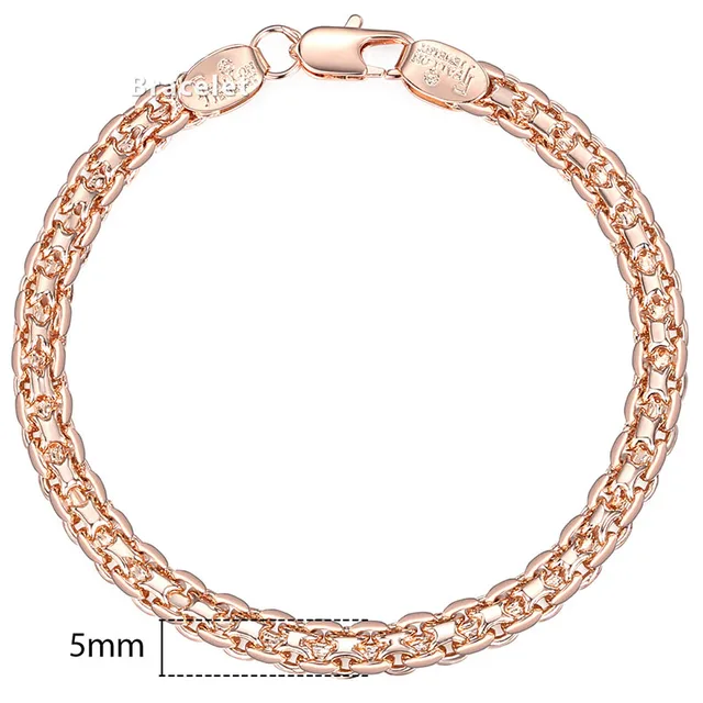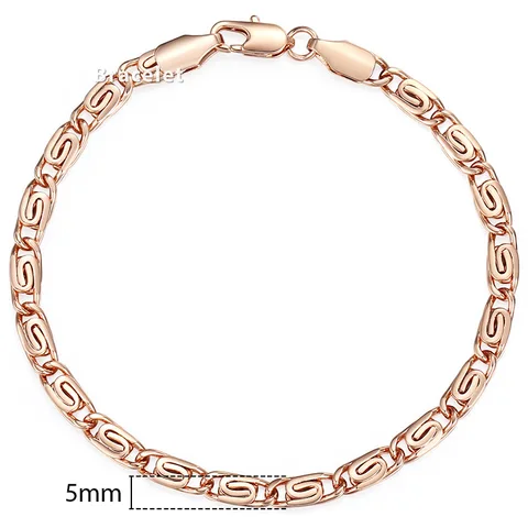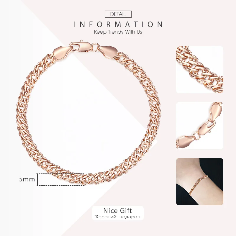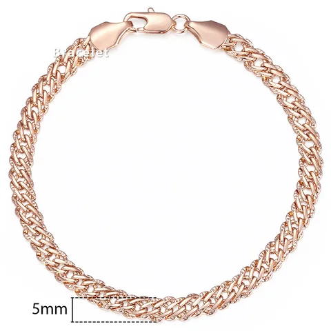 • 585 Rose Gold Bracelets Curb Snail Foxtail Venitian Link Hand Chain Friendship Jewelry Gifts for Women Girl 7-9inch