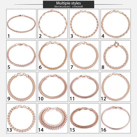 585 Rose Gold Bracelets Curb Snail Foxtail Venitian Link Hand Chain Friendship Jewelry Gifts for Women Girl 7-9inch