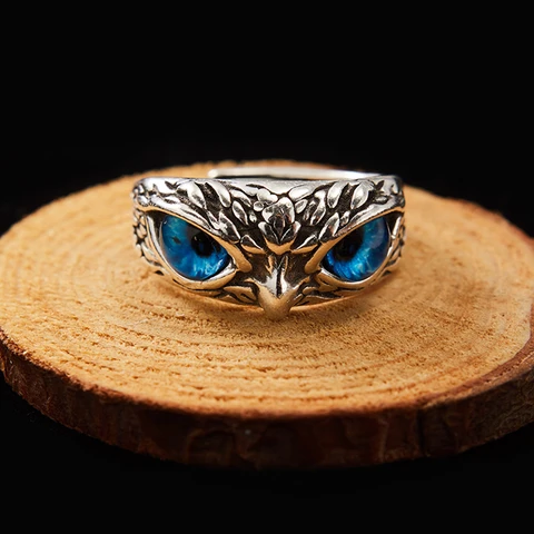 This is a cute owl ring. After professional designer design, two blue big eyes, very cute, its material is copper, will not easily fade, presenting ancient silver, this year's new animal ring I hope you can fall in love with it.New Cute Owl Ring Punk Demon Eye Animal Adjustable Open Rings for Women Men Vintage Couple Ring Gothic Wedding Jewelry Best Gift