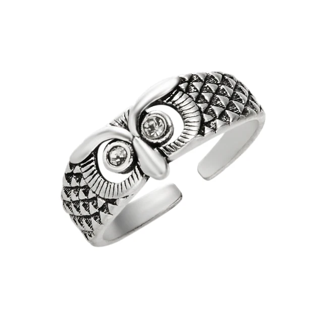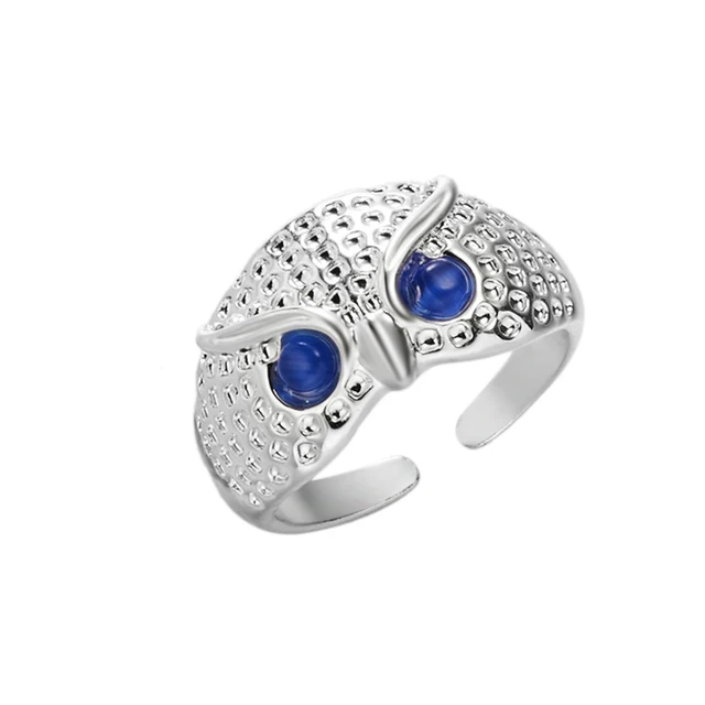 • Animal Owl Rings for Women 6 Cute Style Blue Eye Silver Color Adjustable Open Ring Men Gothic Jewelry Gift