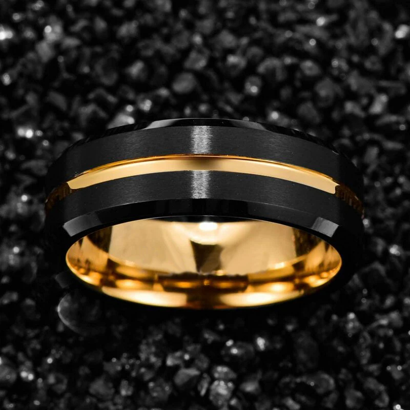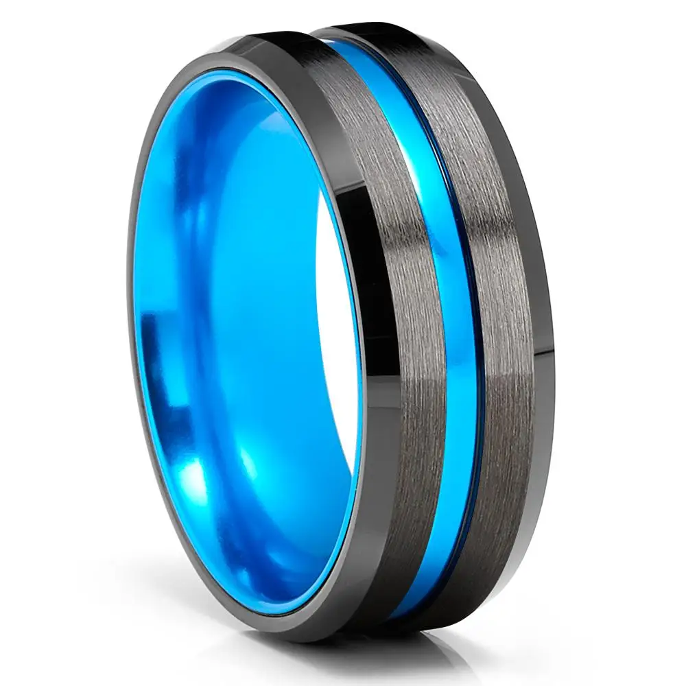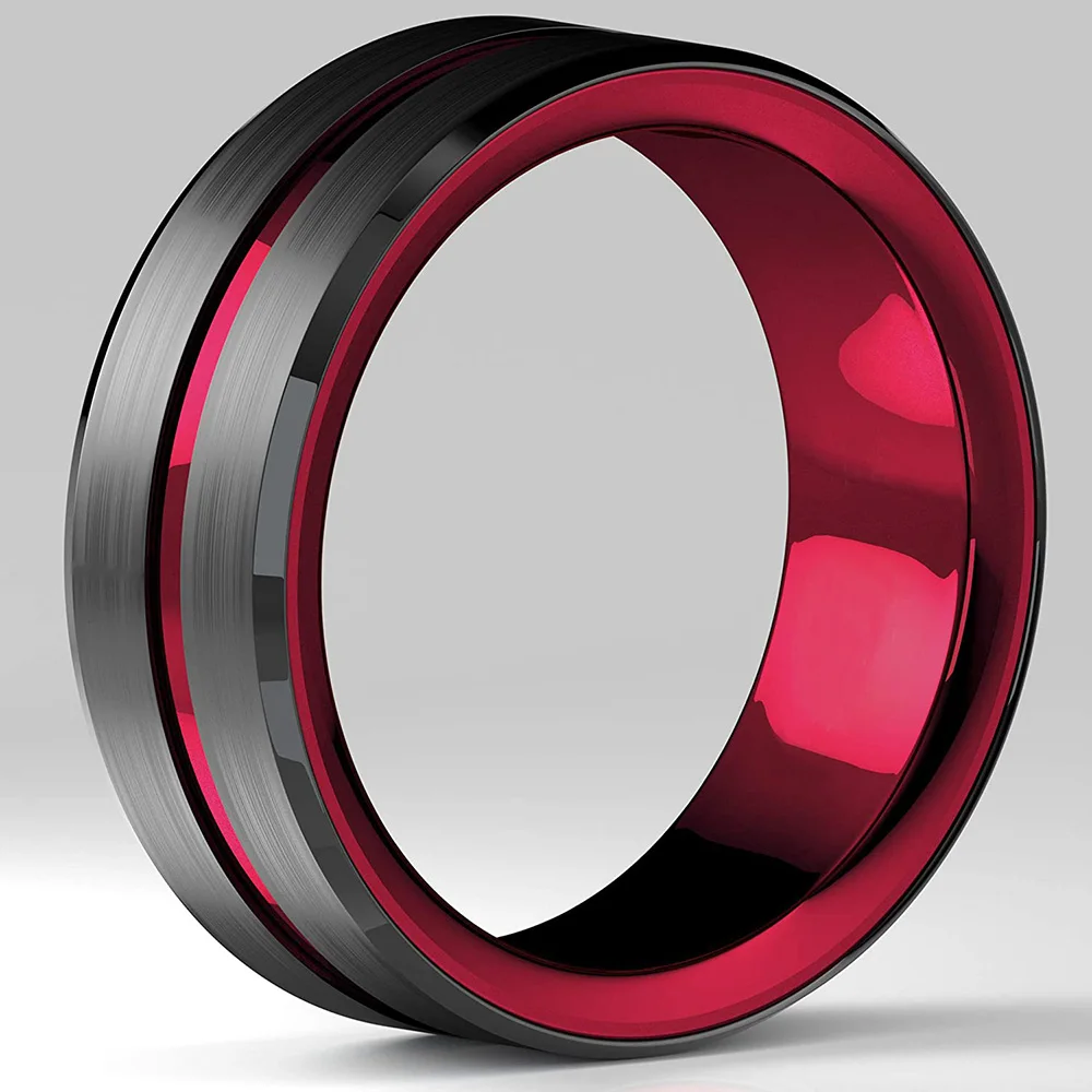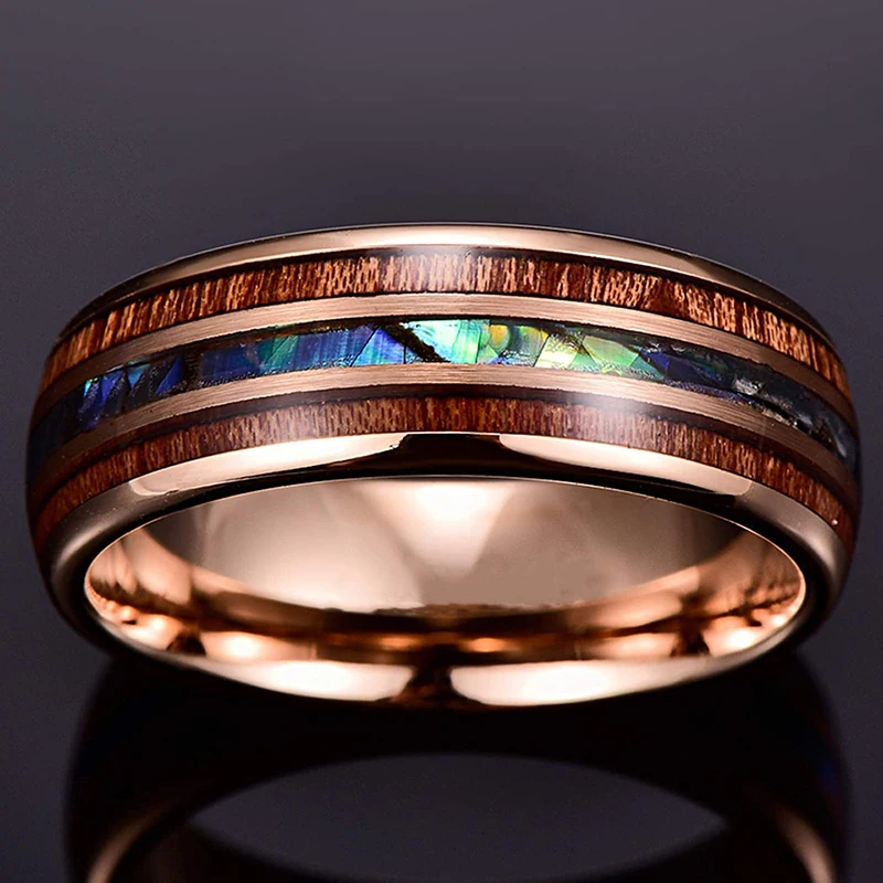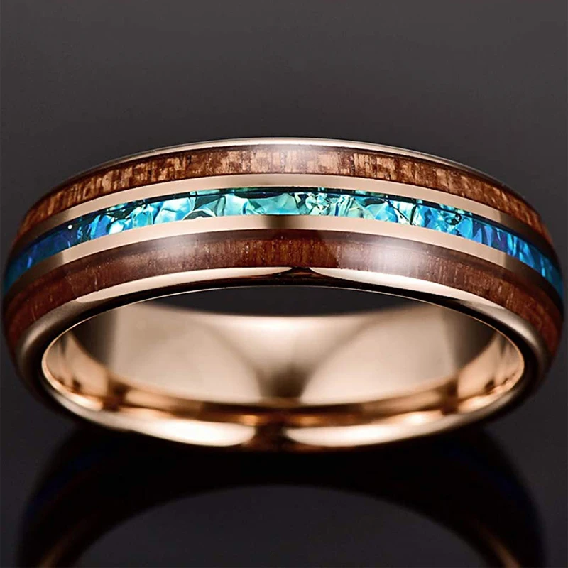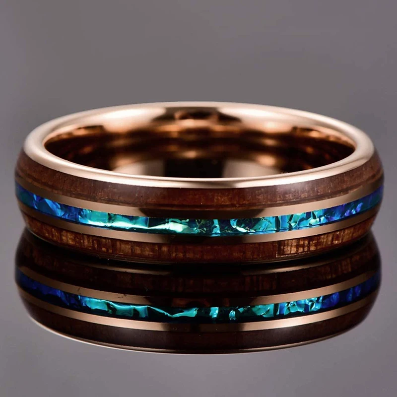 • Men Thin Blue Line Black Stainless steel Ring Koa Wood And Abalone Shell Inlay Red Meteorite Ring Arrow Men Wedding Band