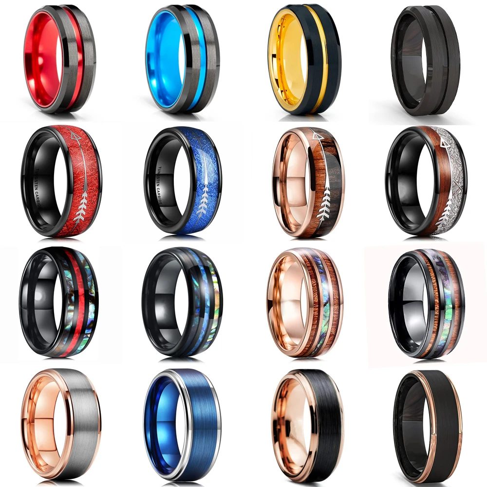 Men Thin Blue Line Black Stainless steel Ring Koa Wood And Abalone Shell Inlay Red Meteorite Ring Arrow Men Wedding Band