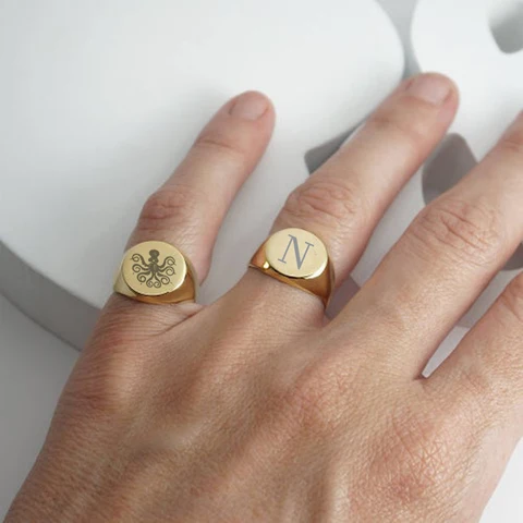 • SIGNET RING SYMBOLIZES SOCIAL STATUS PINKY RINGS INITIAL LETTER RING ENGRAVING HUSBAND GIFT FOR HIM