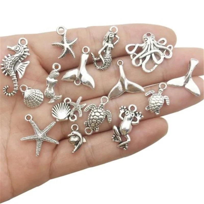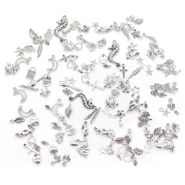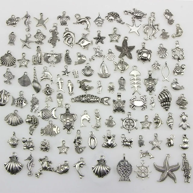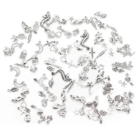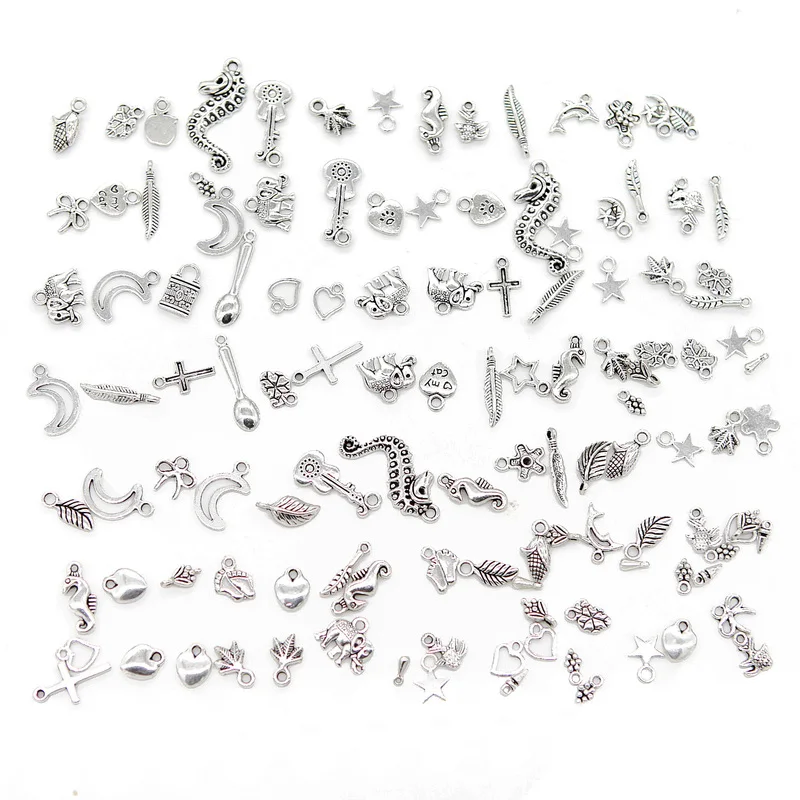 - Mixed Tibetan Silver Charms Diy Silver Beads Accessories Heart Shape Cross Pendant Starfish Elephant Metal Charm Etc.