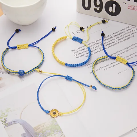New Trendy Ukraine National Flag Bracelets Handmade Natural Stone Beads Bracelet Yellow Blue Ukrainian Flag Patriotism Pride