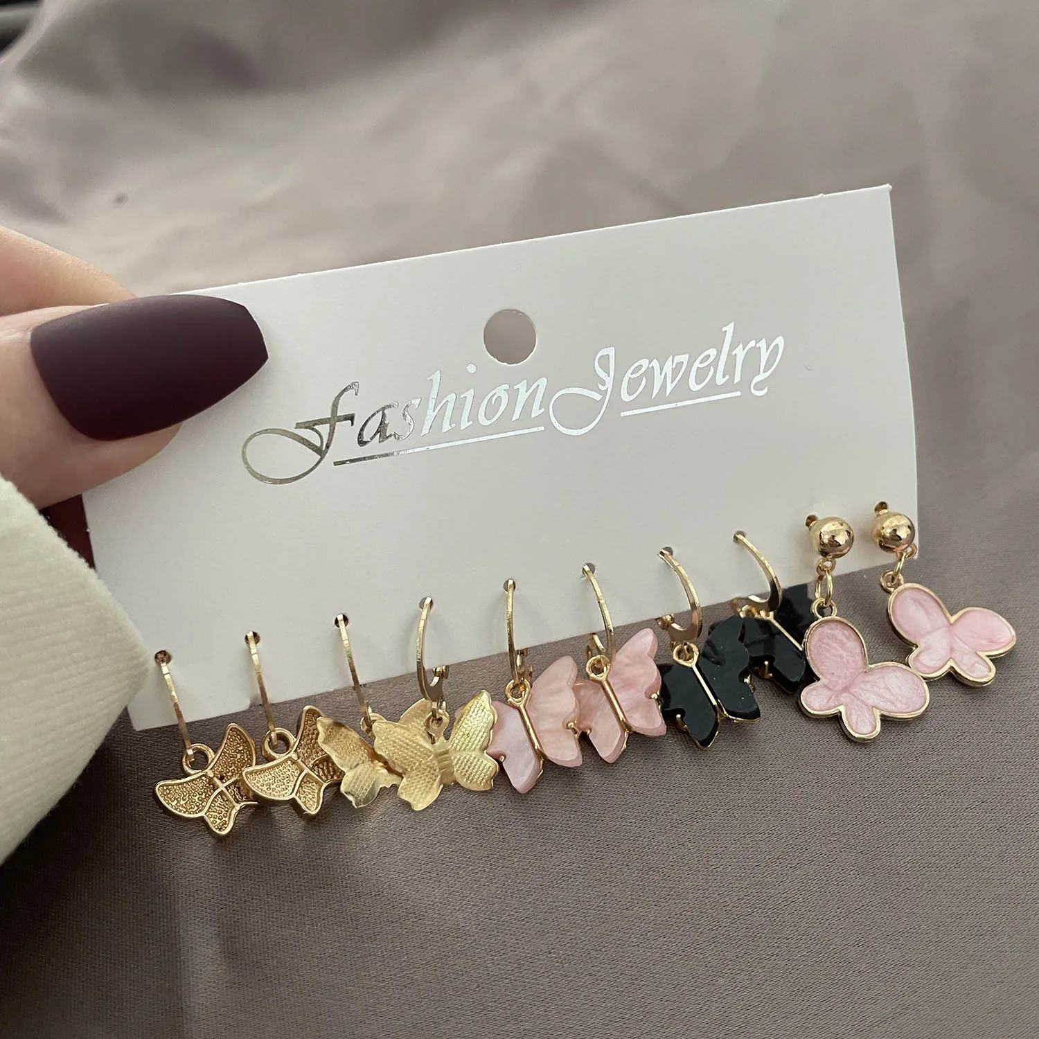 Fashion Boho Snake Butterfly Drop Earrings For Women Geometirc Gold Metal Circle Hoop Earrings Set 2022 Trend Jewelry Best Gift