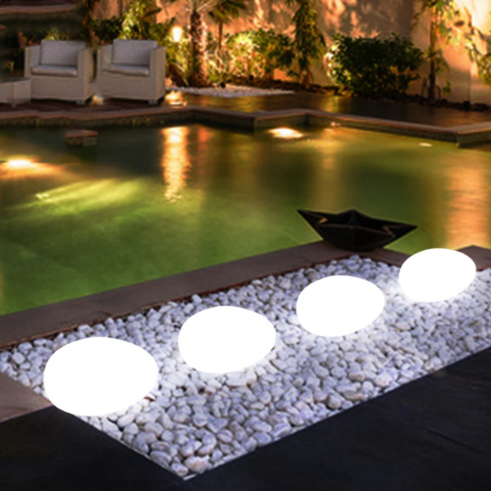 Outdoor, Glow Cobble Stone Shape Solar Garden Light Waterproof Color Changing Landscape Lights with Remote Control