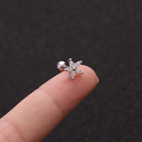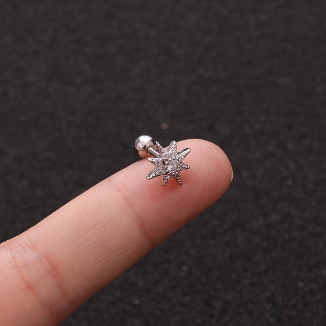 Star Heart Cross Flower Crown Bar Cartilage Piercing Stud Helix Jewelry Tragus Conch Rook Earlobe Screw Back Earring