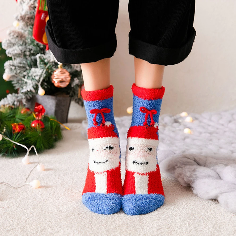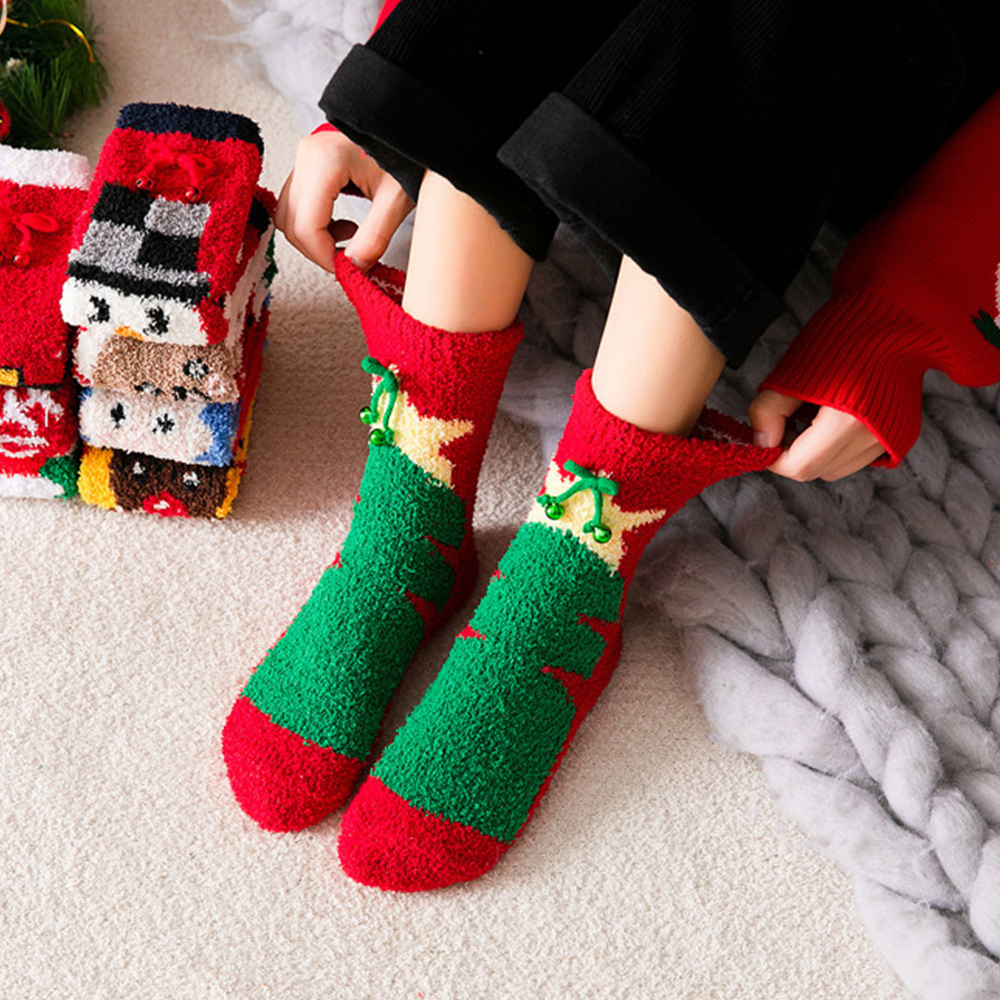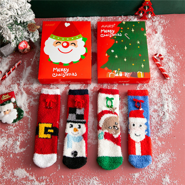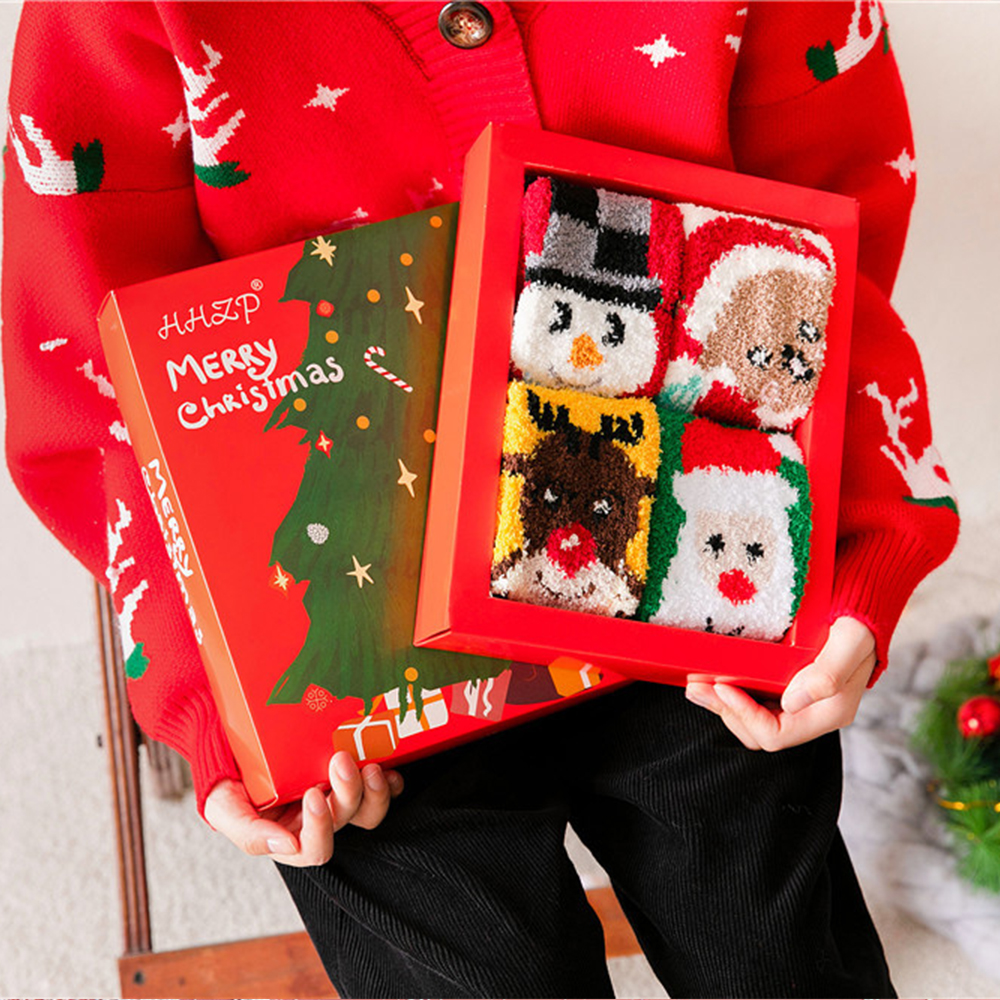 4 pairs Gift Box Coral Fleece Socks Christmas Socks