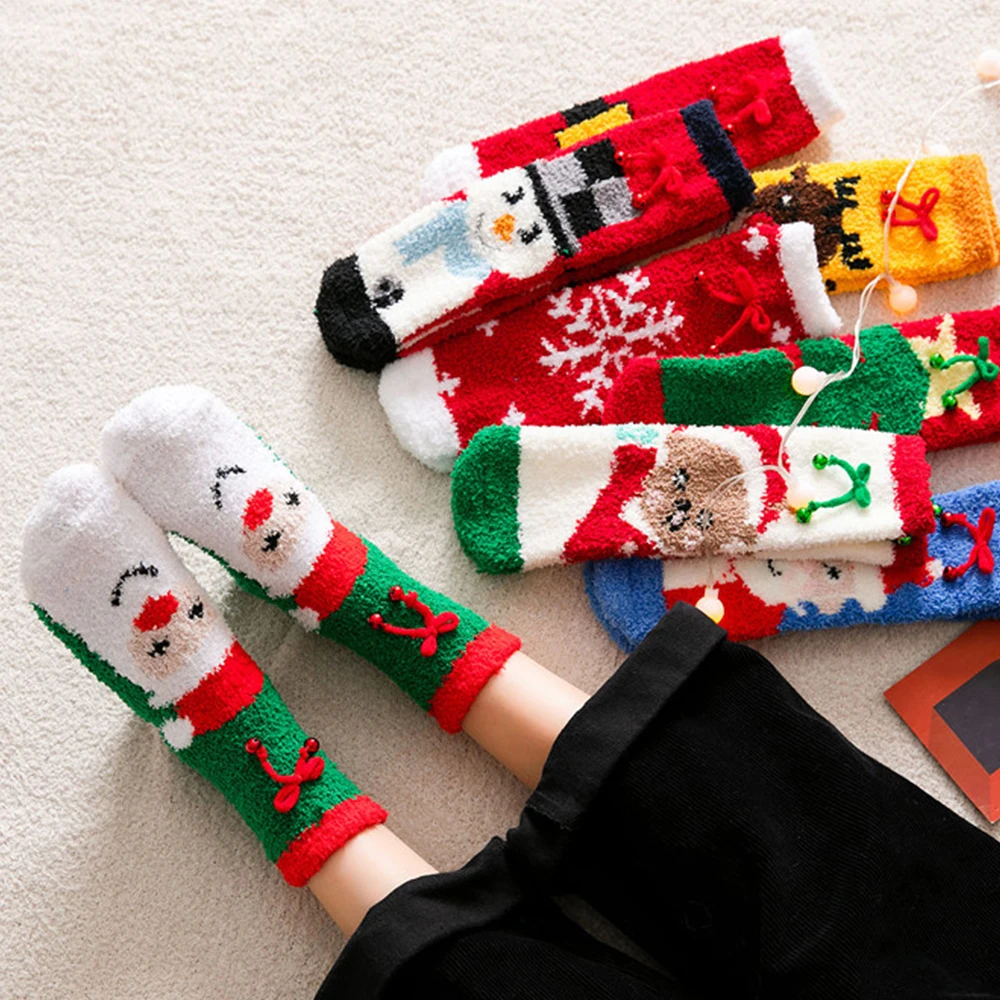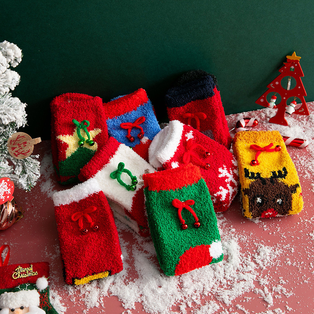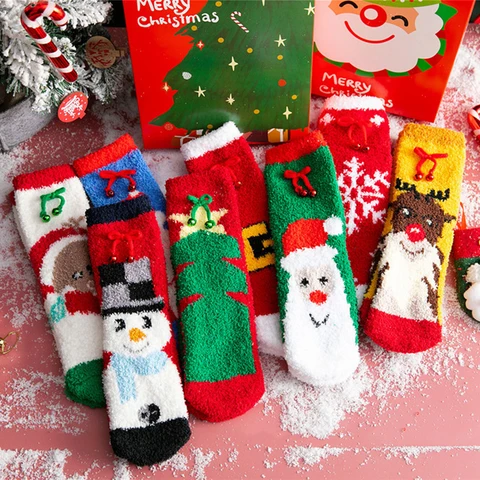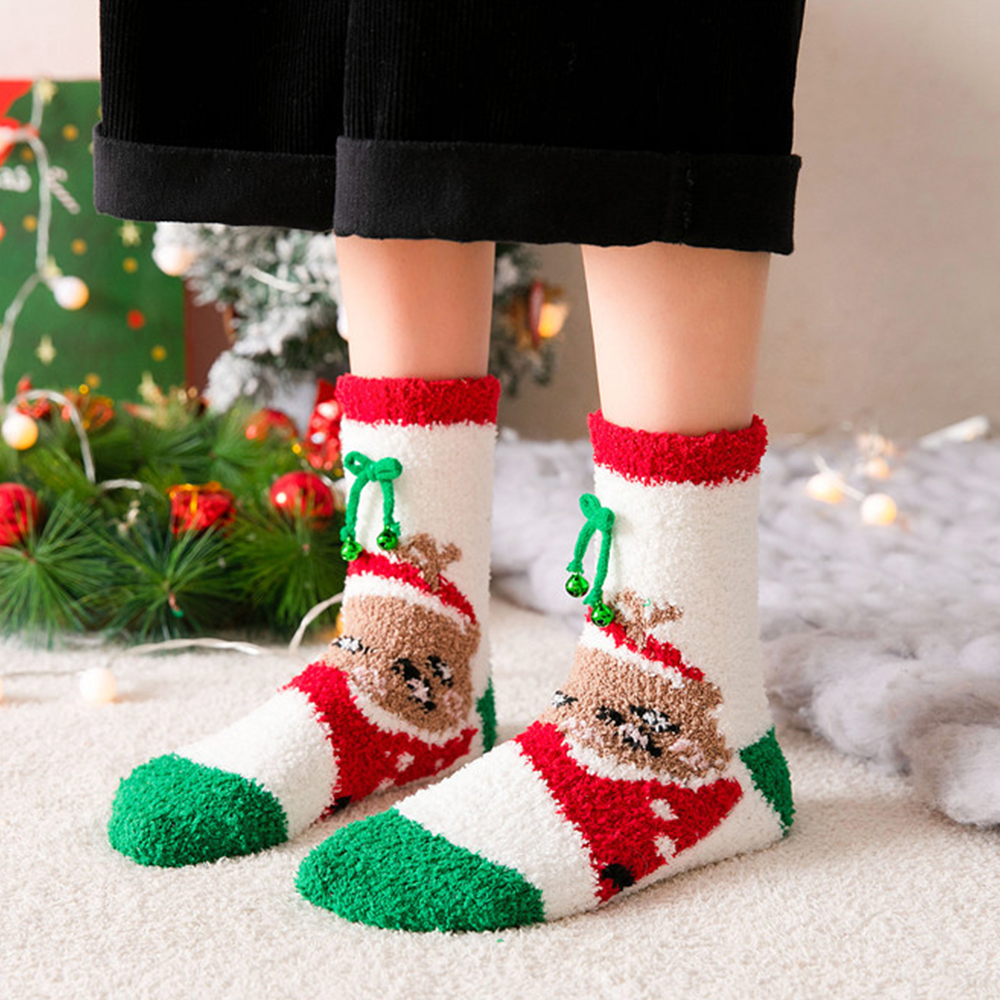 4 pairs Gift Box Coral Fleece Socks Christmas Socks