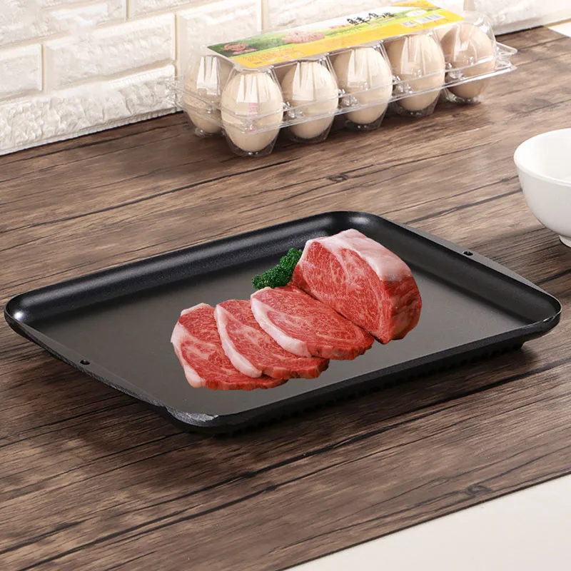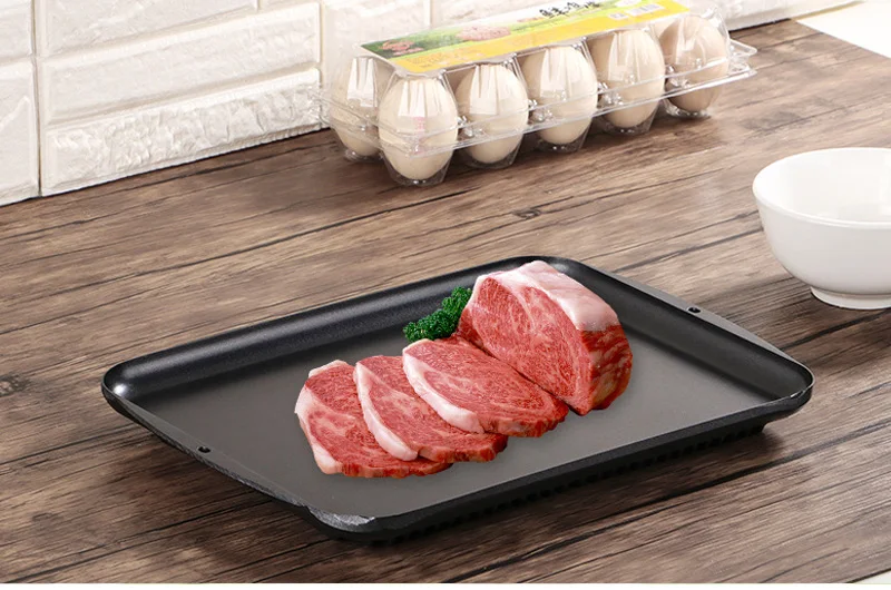 2.Easy to clean! The special process makes the thawing plate easy to clean, non-stick oil.