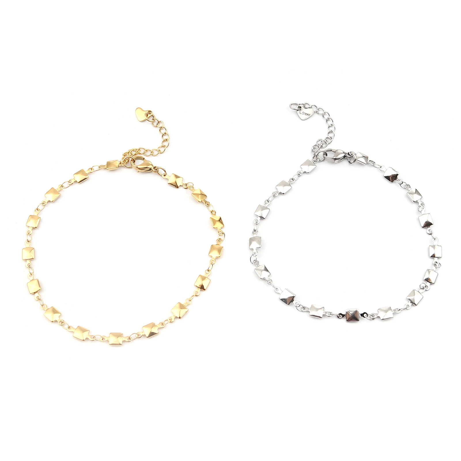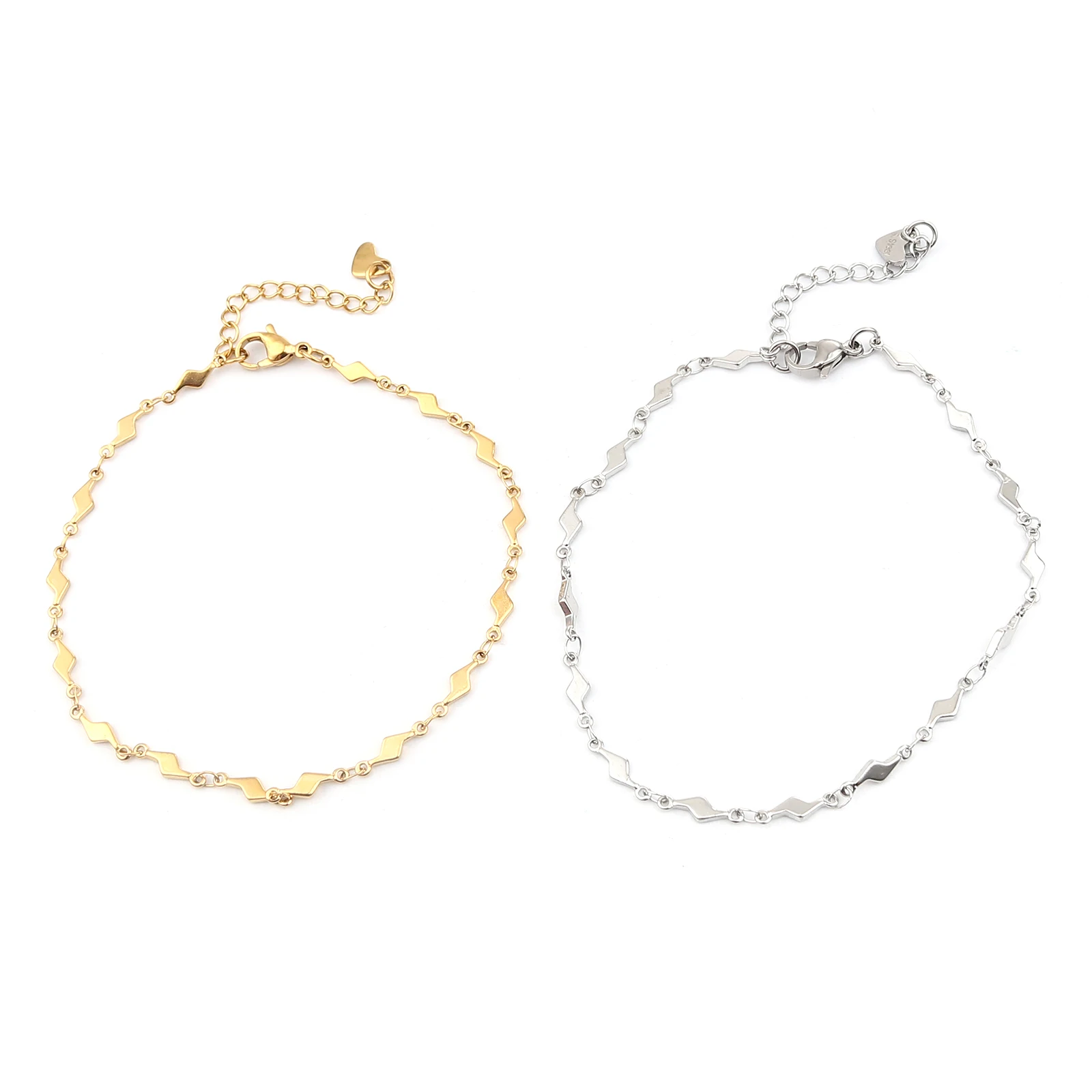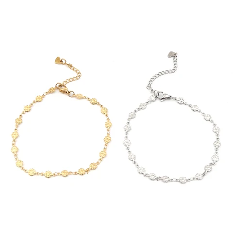 • Hot 304 Stainless Steel Anklet For Women Men Jewelry Silver Color Gold Color Flower Heart Connector Charms Wholesale Supply