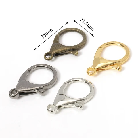 10pcs 35mm Silver/Gun Black/Gold/ Big Metal Lobster Clasp Keyring Hooks Connector For DIY Keychains Making Accessories Jewelry