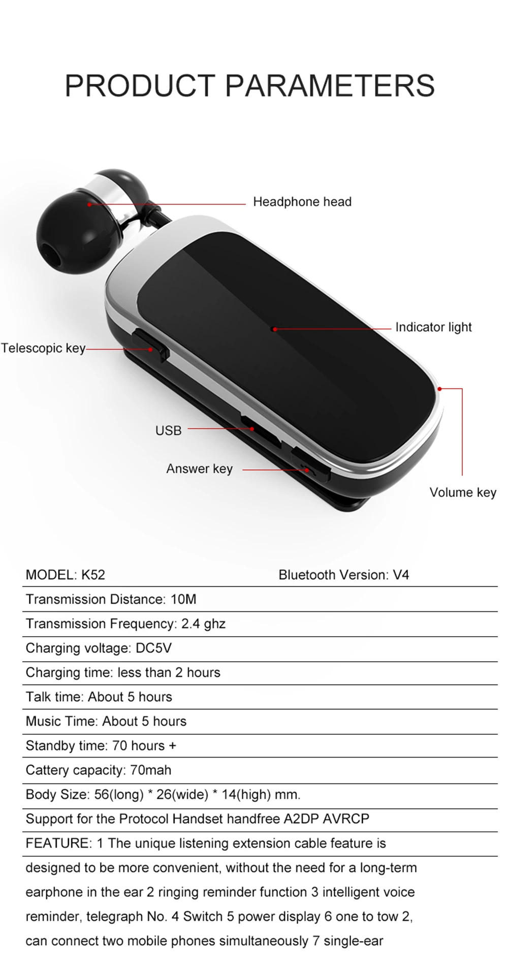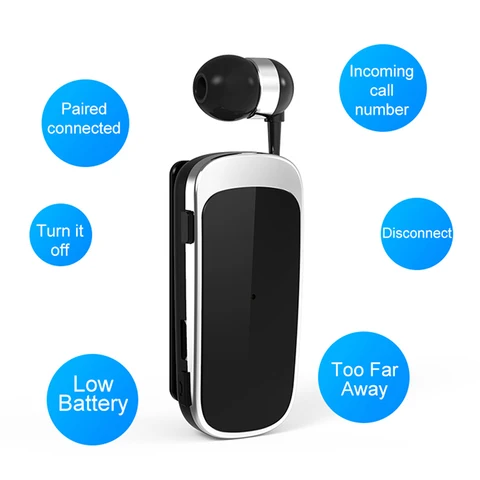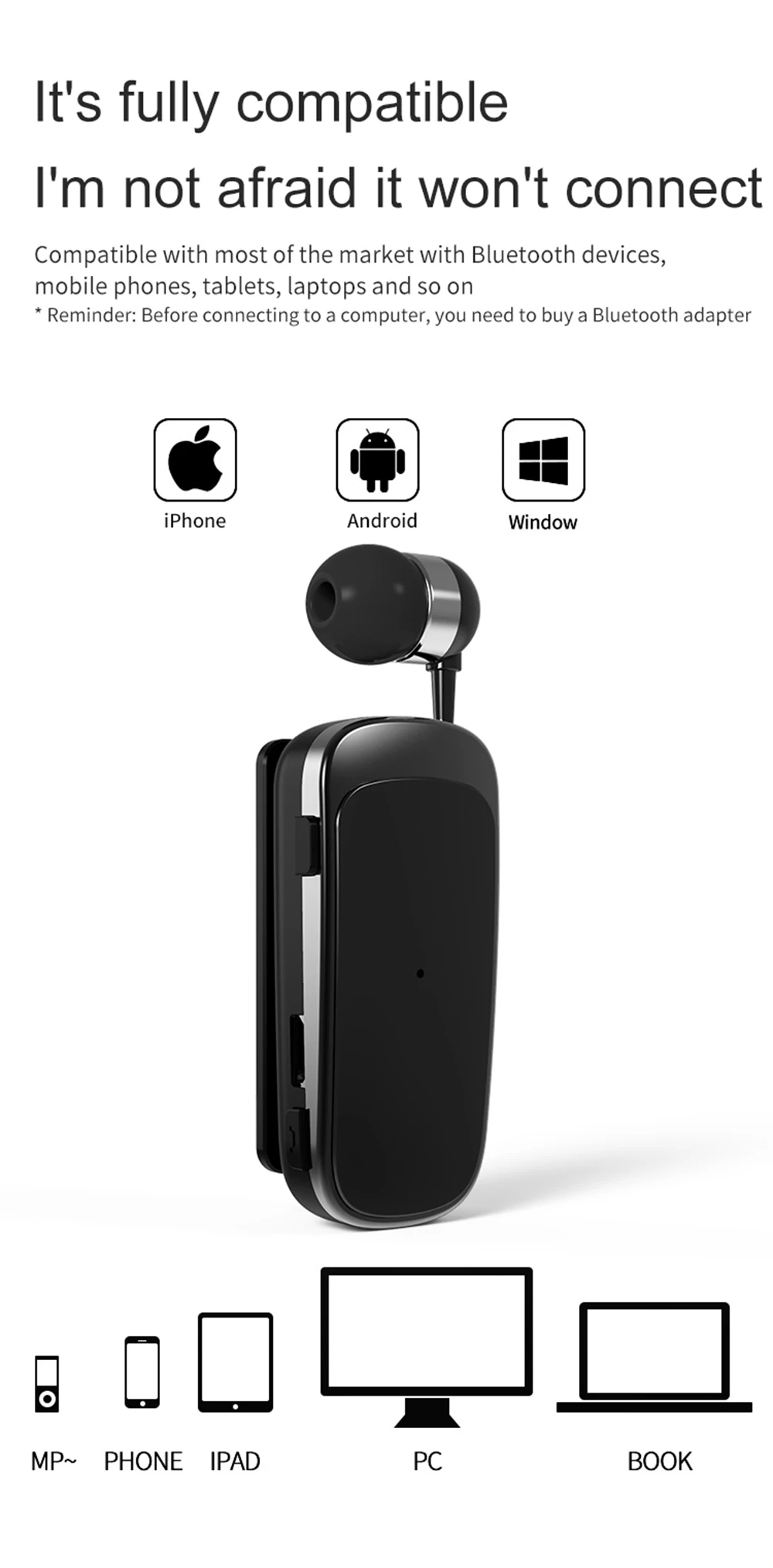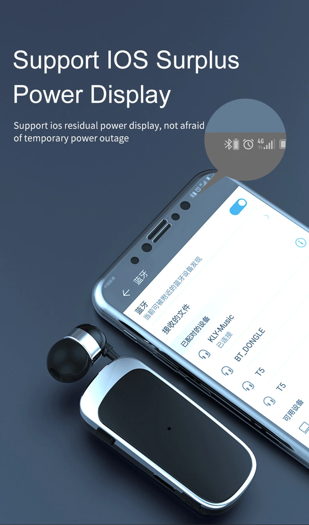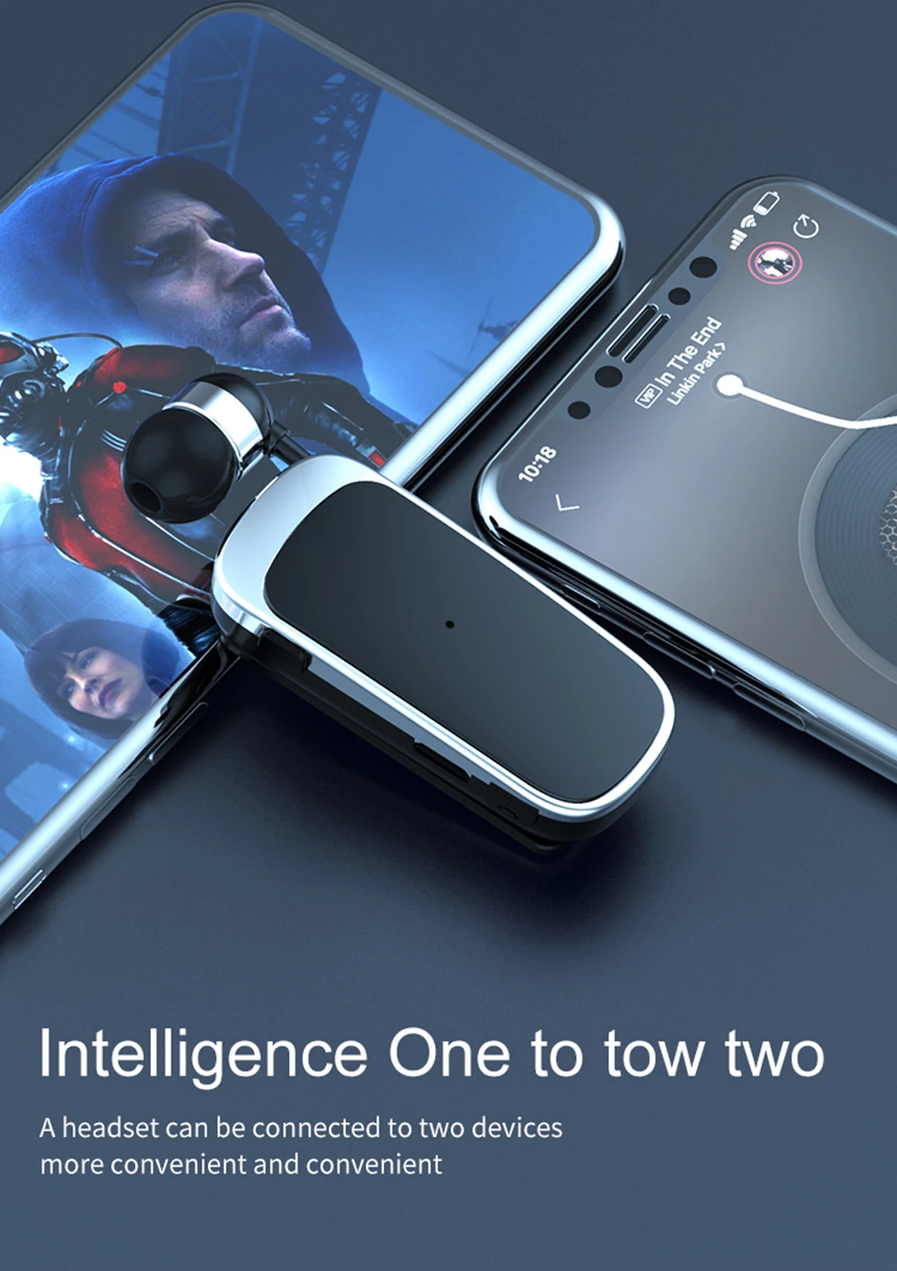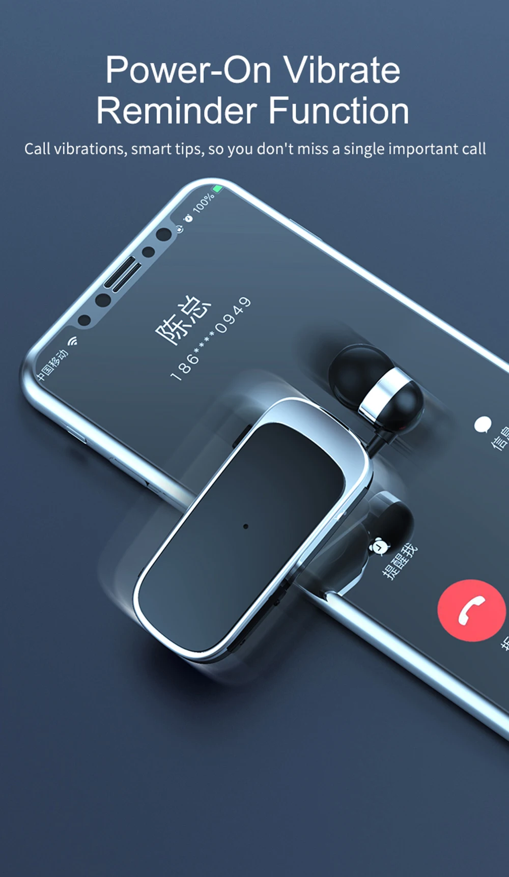 • Earphone Bluetooth Handsfree Earbuds Headset Calls Remind Vibrator Wear Clip Driver for phone with Mic ears in lotus