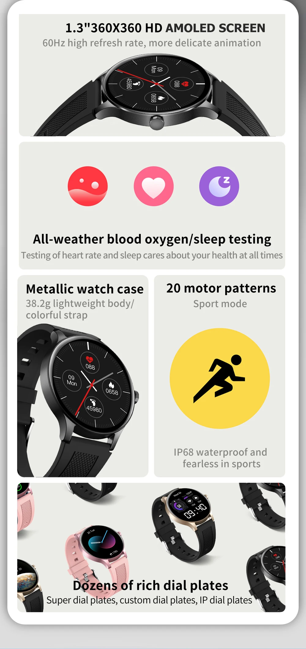 Screen display:1.3inch-circular screen-360*360