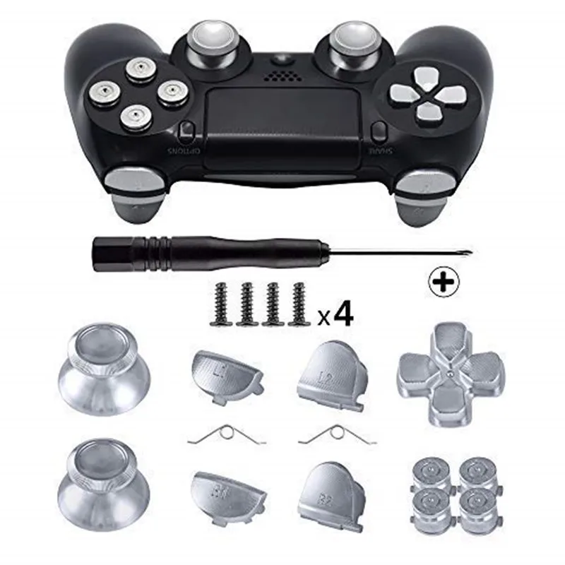 • Buttons for Playstation 4, Aluminum Thumbsticks Analog Grip Bullet D-pad L1 R1 L2 R2 Trigger for PS4 V1 Old Controllers