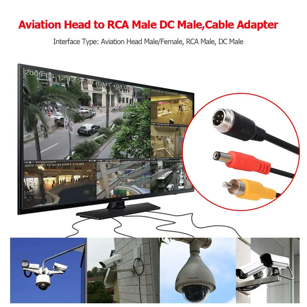 Aviation Connector to RCA Male DC Male Extension Cable Adapter Converter for CCTV Camera Security DVR