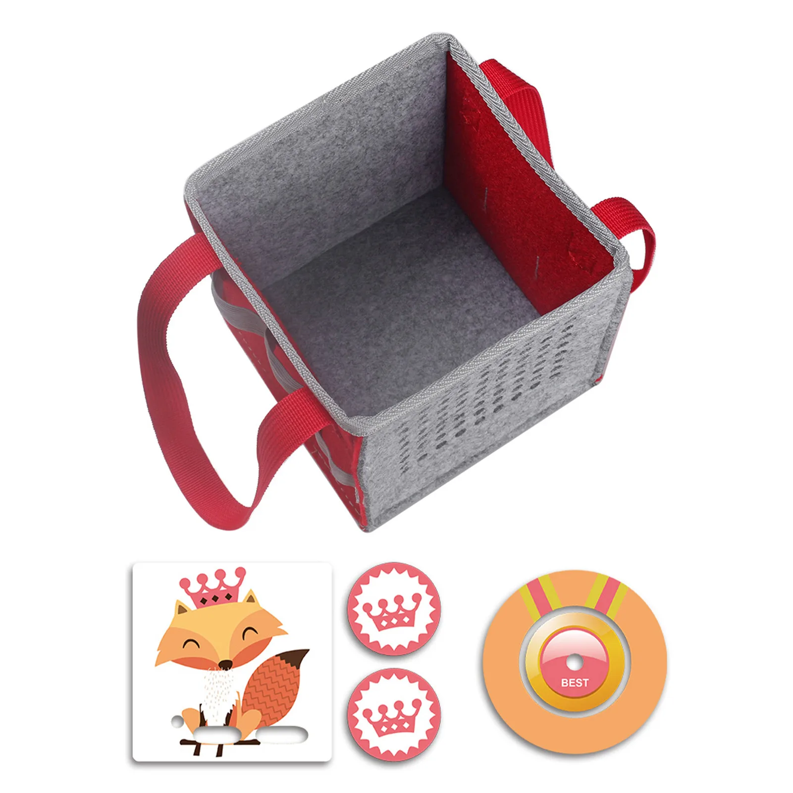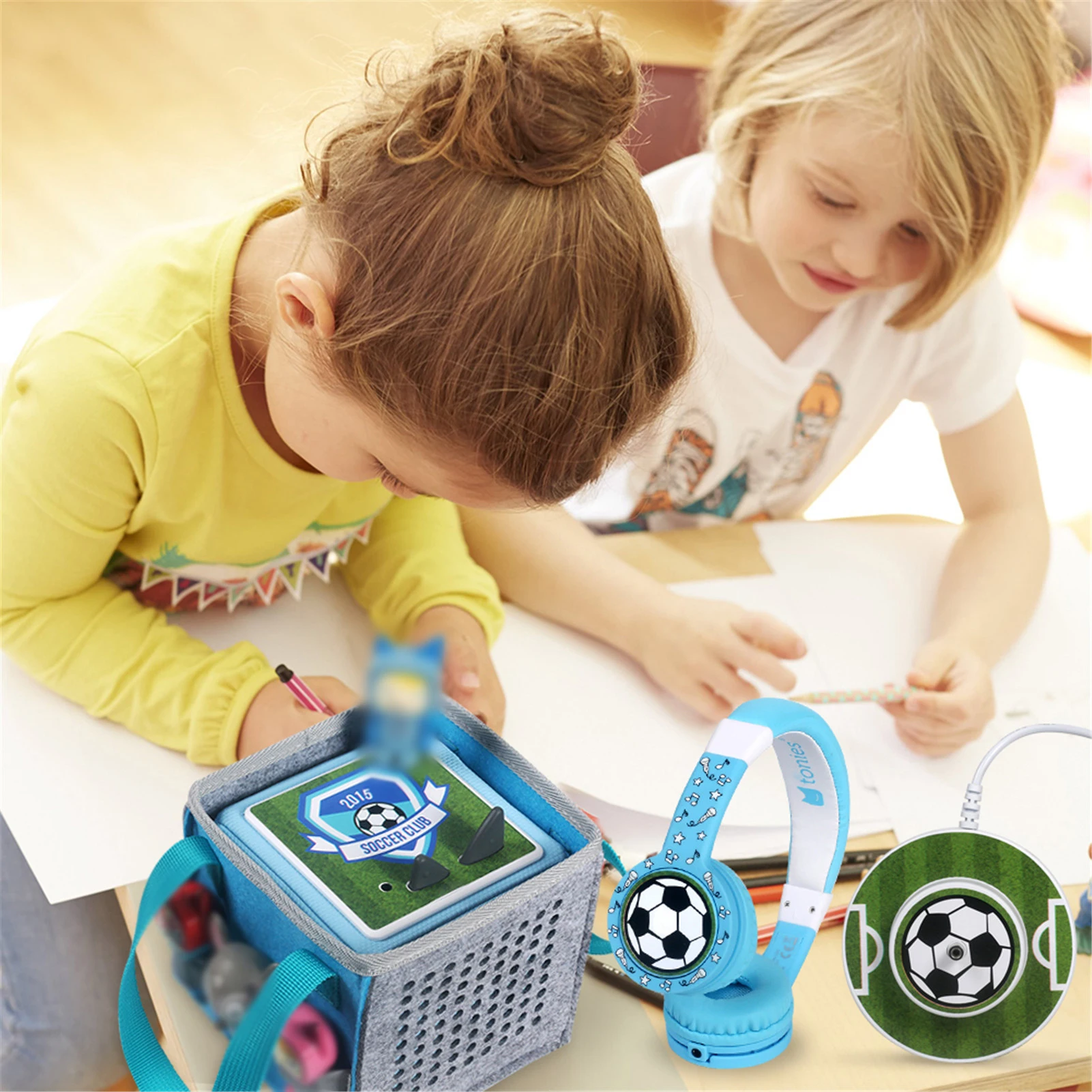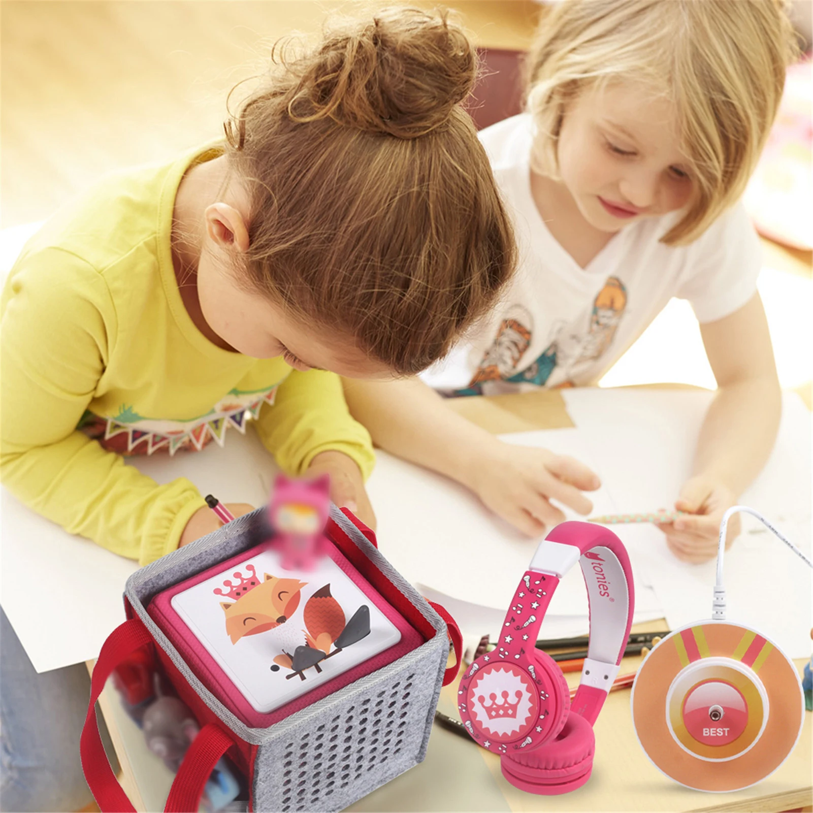 1、High-quality Materials: The handbag is made of high-quality felt materials and stitched by hand. It is very soft and will not scratch children. The stickers are made of high-quality PVC, which is environmental protective and durable. Make your speakers and headphones more unique and cartoonish.2、Convenient to Carry: You can take it anywhere with the soft-shell folded storage bag. When traveling, you can put the children\\\\\\\'s music player in the bag. Carry your children\\\\\\\'s music box with you, and share the game time with children who are just beginning to walk.