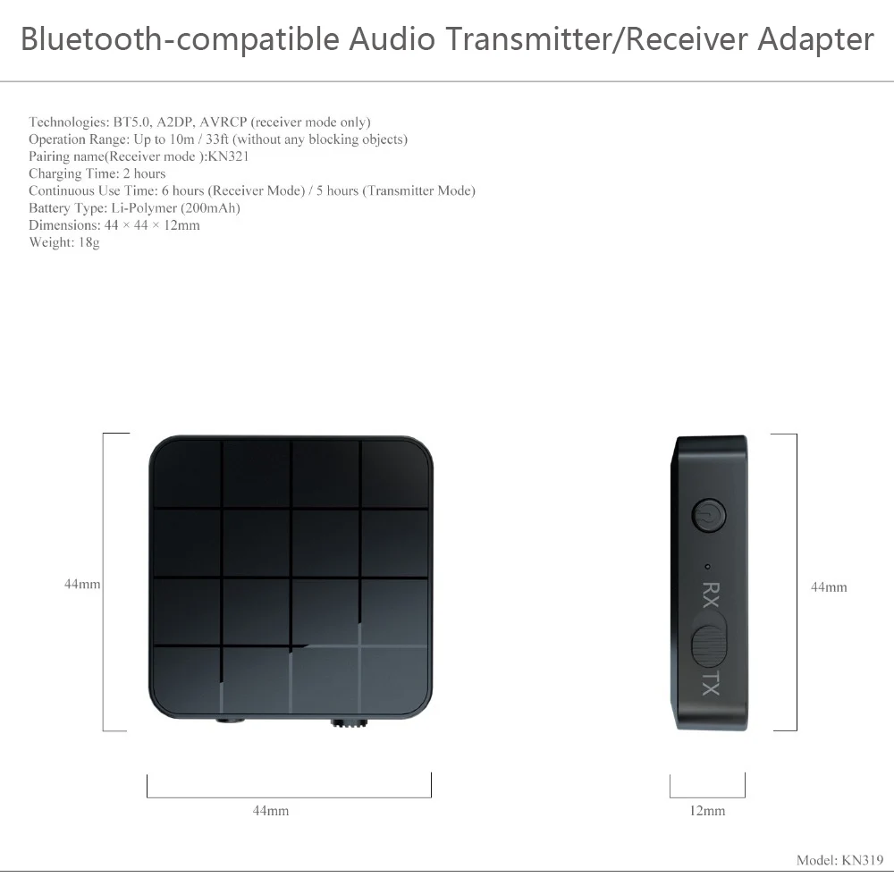 4.Switch between transmitter and receiver modes with the simple flick of a switch. Effortlessly connect using advanced BT technology and 3.5mm audio cable (included).