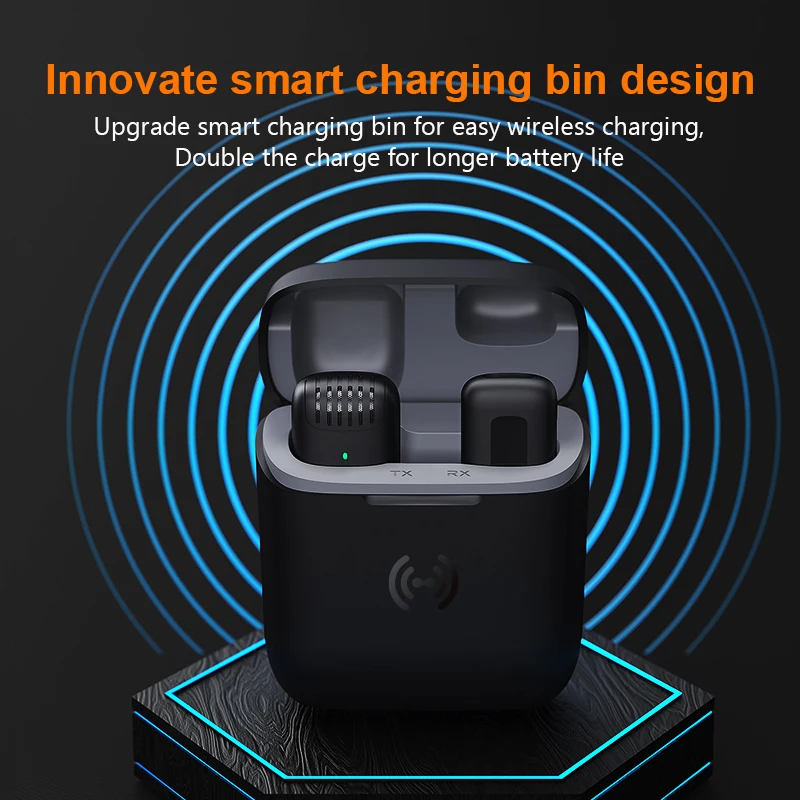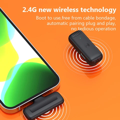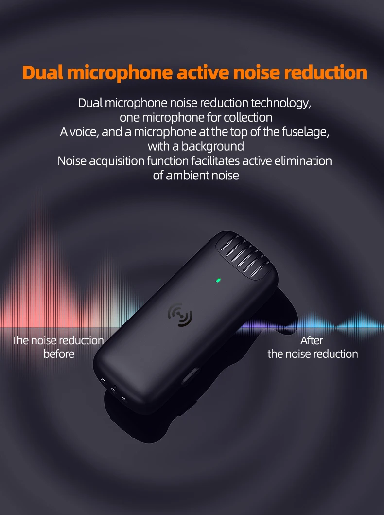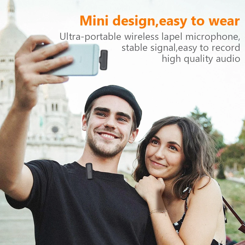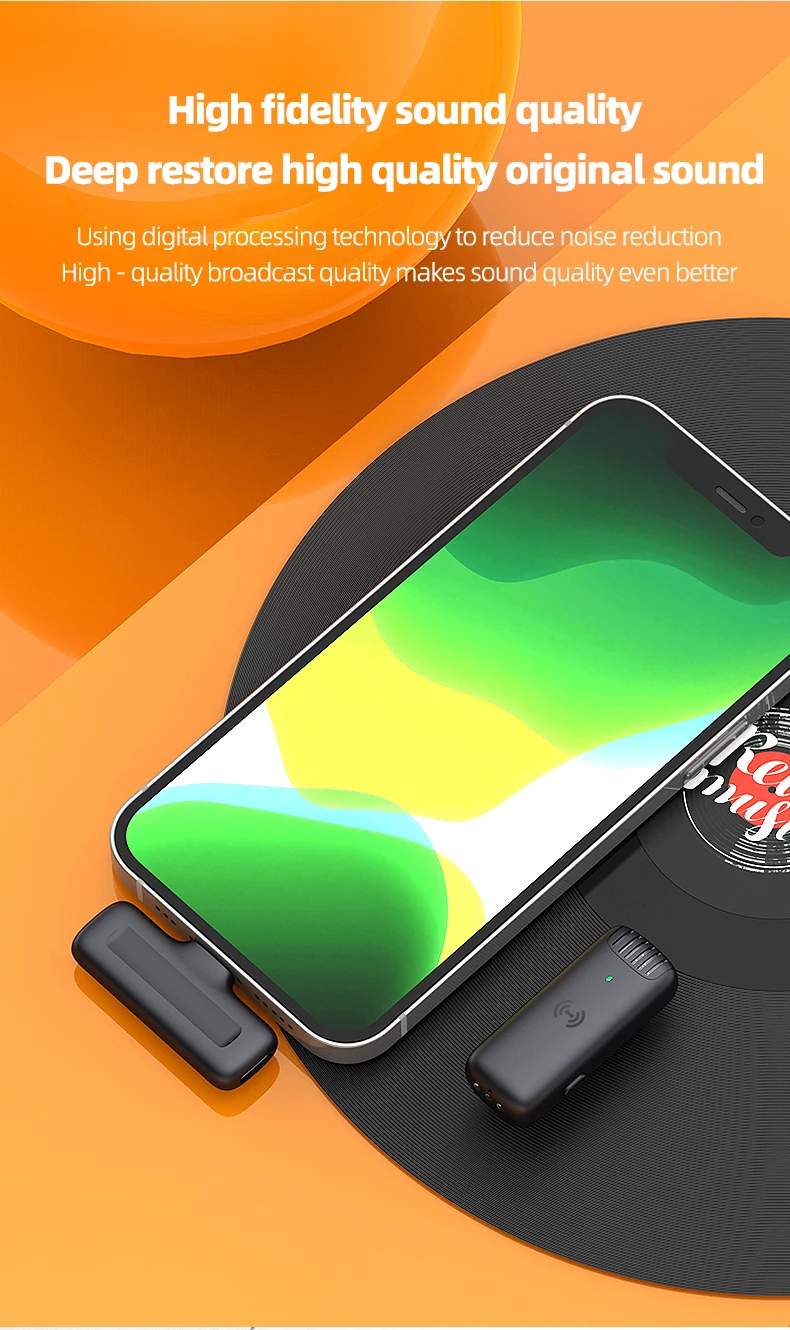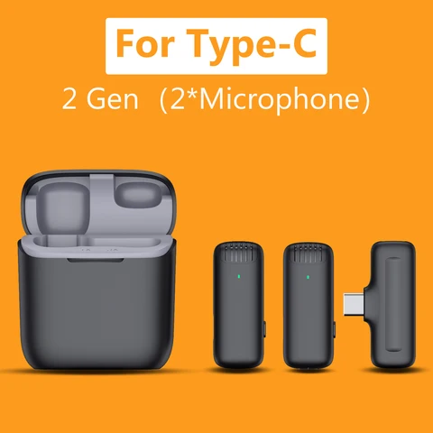 Wireless Lapel Microphone Lavalier Mic Noise Reduction Live Interview Mobile Phone Recording for iPhone Type C with Charging Box