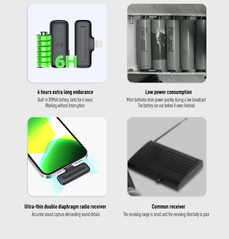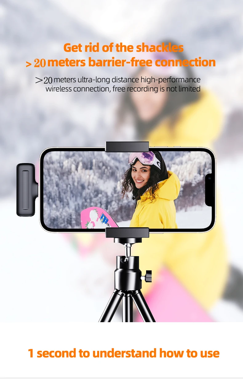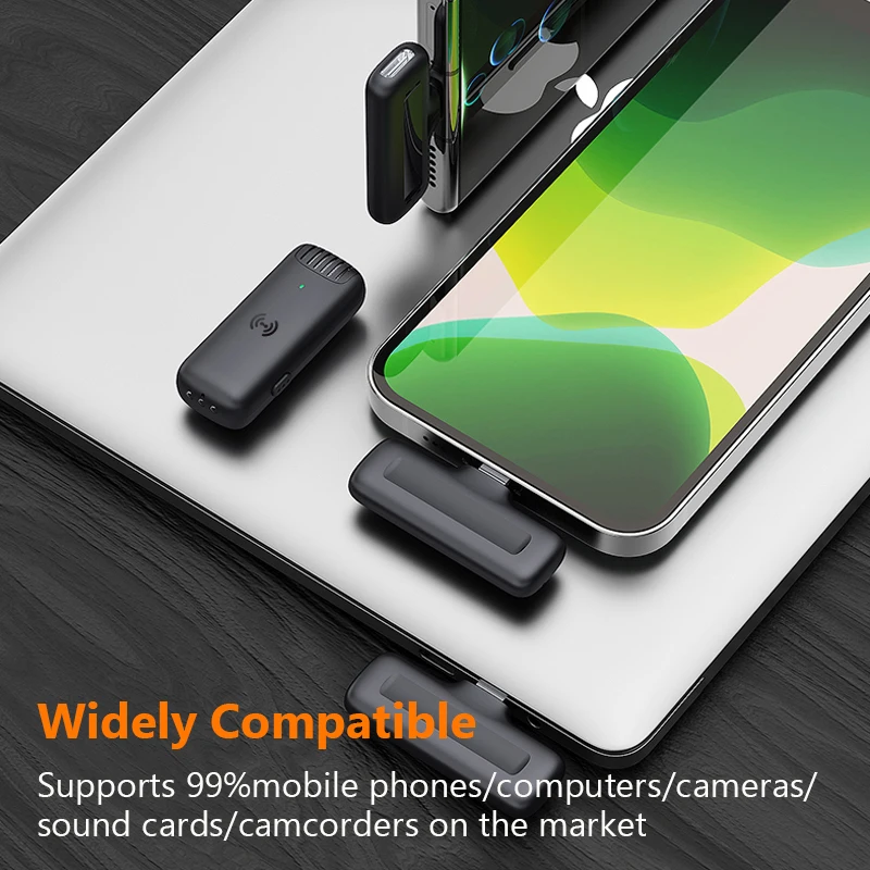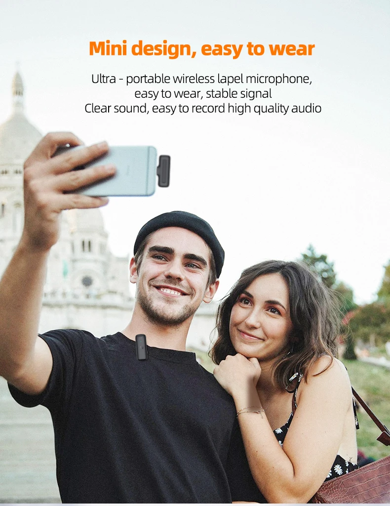 Wireless Lapel Microphone Lavalier Mic Noise Reduction Live Interview Mobile Phone Recording for iPhone Type C with Charging Box