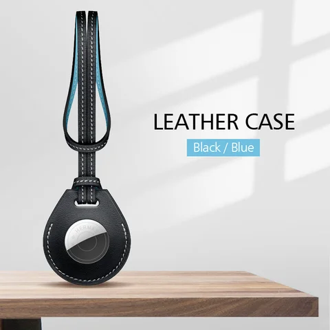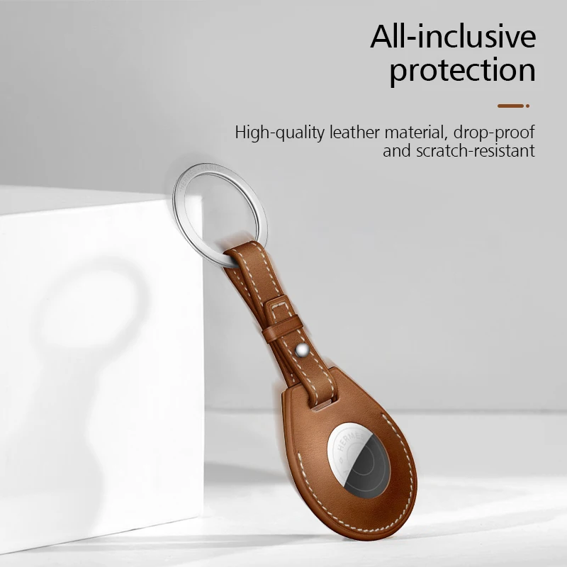 • Premium Leather Protective Cover For AirTag Luggage Tag Bag Charm Shell For Apple Airtags Anti-lost Tracker Case