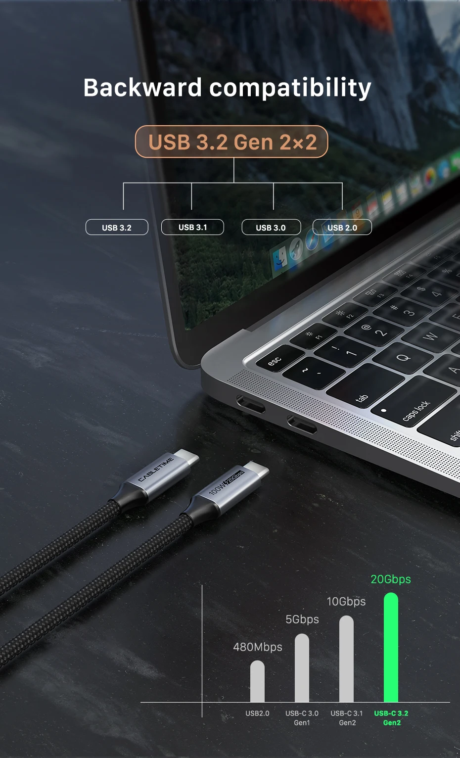• USB C Cable Gen 2 20Gbps PD100W Fast Charge 4K 60Hz USB C 3.2 Cable for Laptop Macbook Pro Dell C414