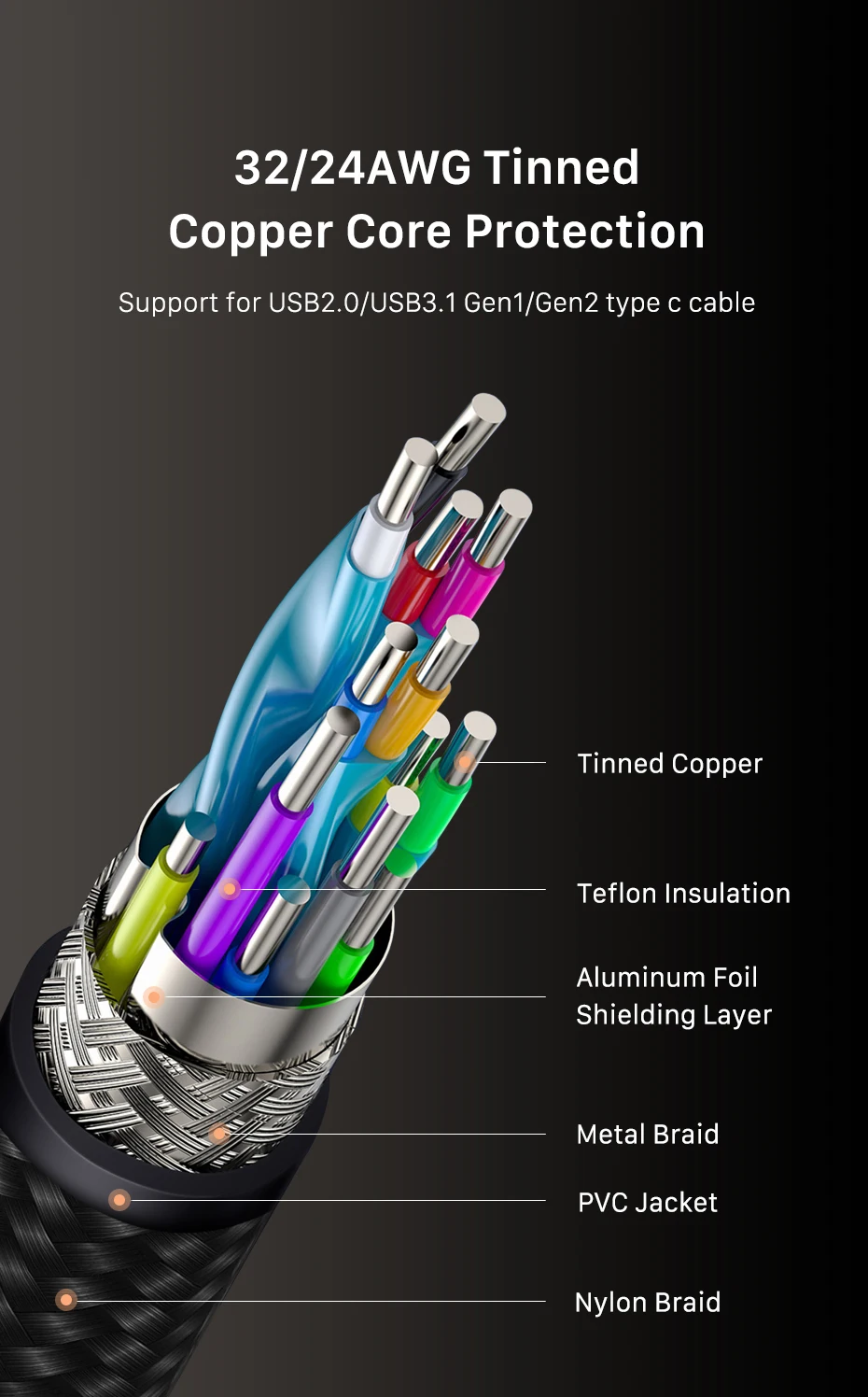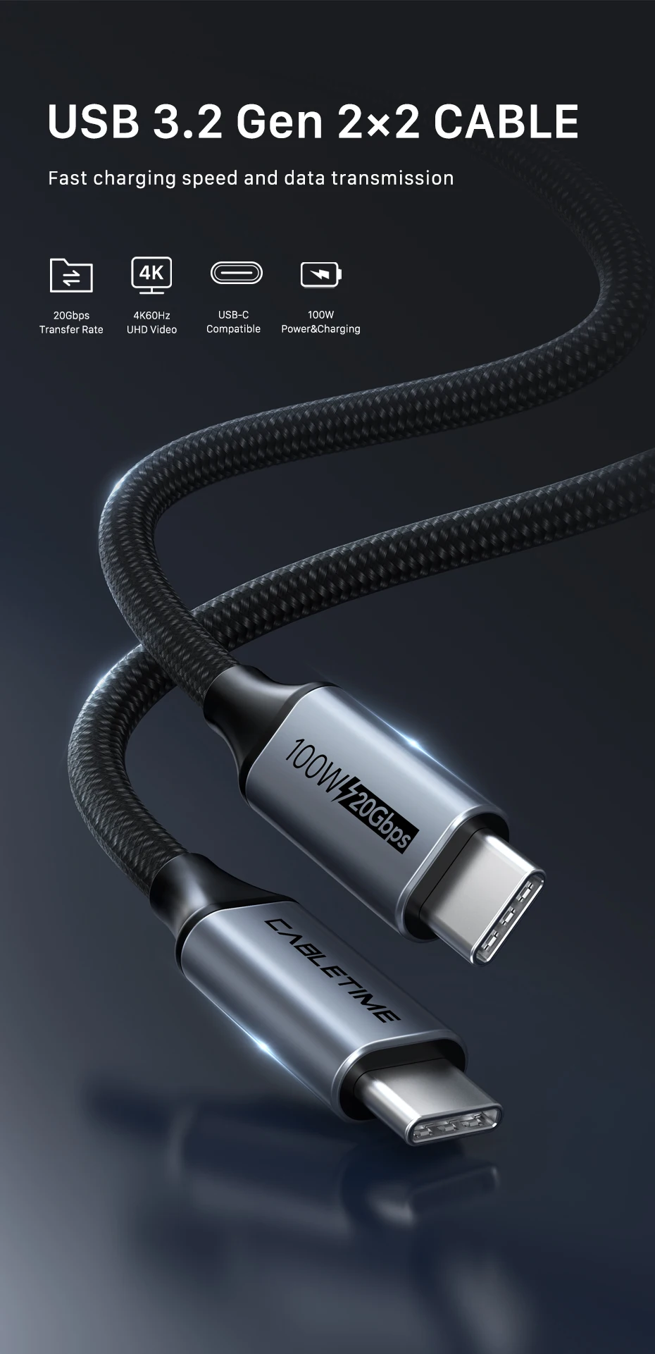 USB C Cable Gen 2 20Gbps PD100W Fast Charge 4K 60Hz USB C 3.2 Cable for Laptop Macbook Pro Dell C414