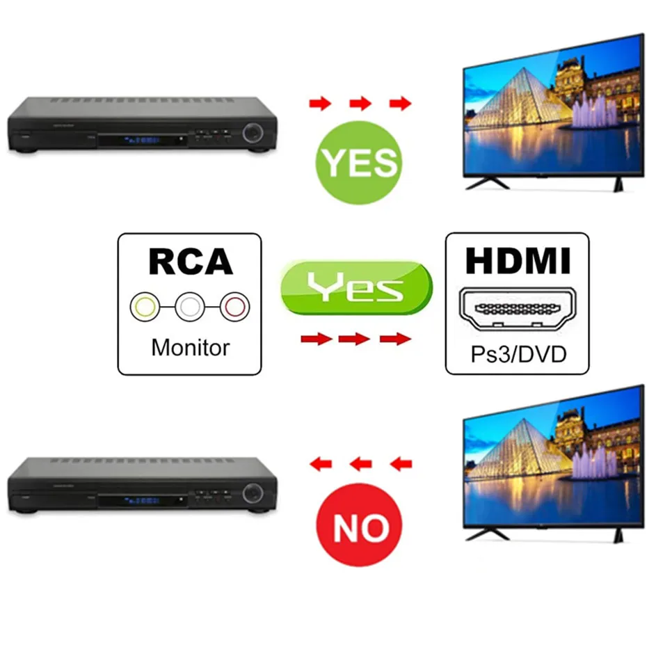 Note: This is an RCA to HDMI converter and cannot be used as an HDMI to RCA/AV converter. 3D and 4K are not supported