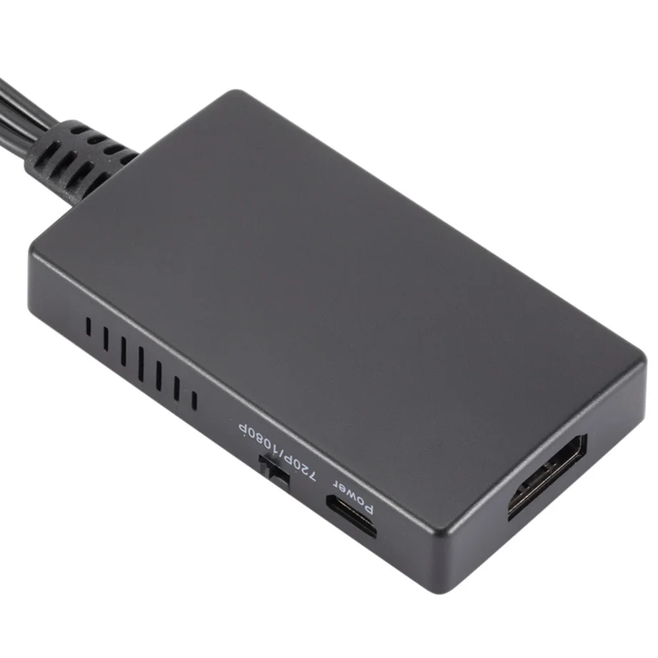 The RCA to HDMI converter converts analog RCA composite input to HDMI output and displays it on a 1080p (60HZ) HDTV/display.
