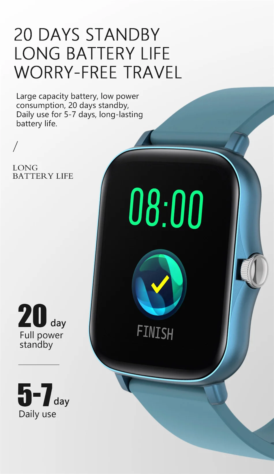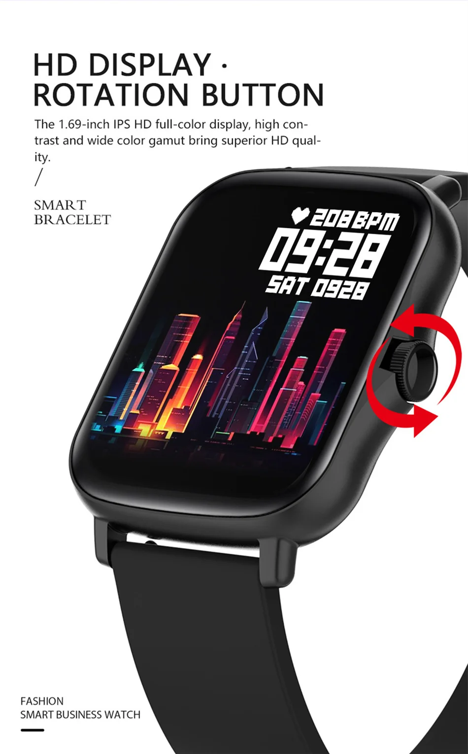 P8 Plus is our latest generation and most cost-effective smart watch. In this new version, P8 Plus smart watch has all-new 1.69" colour display and full capacitive touch, supporting taps and swipes, so it is easy to read and operate.