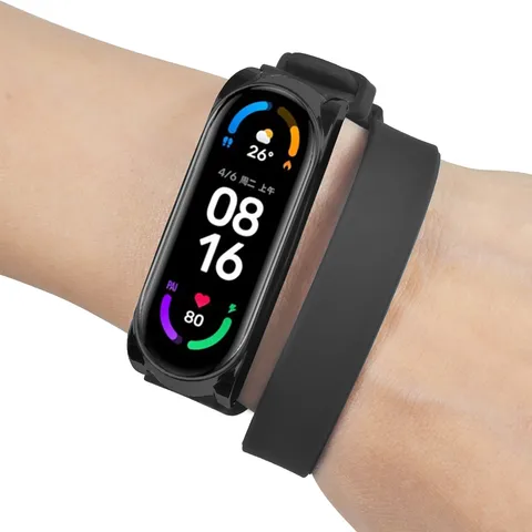 Smart Watch Silicone Bracelet For Mi Band 6 Smart Wristband With Buckle  Replacement Metal Shell Extra Long Strap Accessories