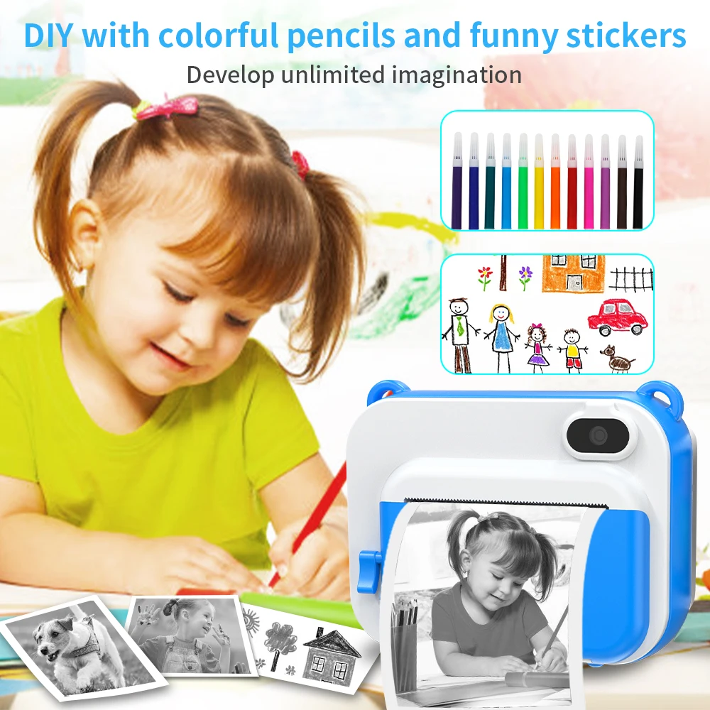 DIY Printting Children\\\'s Camera With Thermal Paper Digital Photo Camera Selfie Kids Instant Print Camera Boy\\\'s Birthday Toy Gift