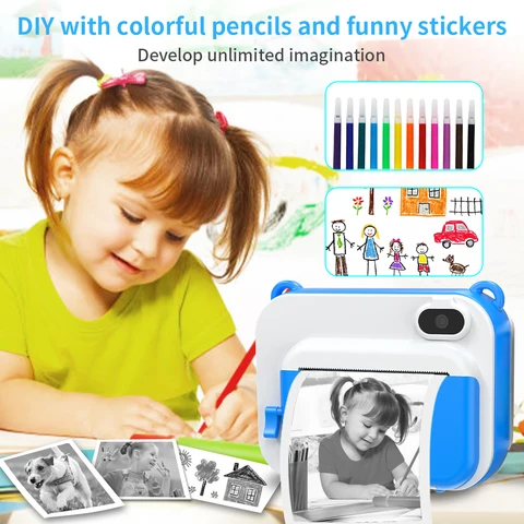 A: The camera print black and white photos, so we send a set of color pens to you as gift. Kid can DIY the photos after them take. It is really funny.