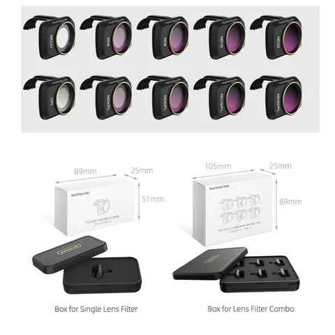 - 6pcs Mix Filter Set: MCUV, CPL, ND4, ND8, ND16, ND32