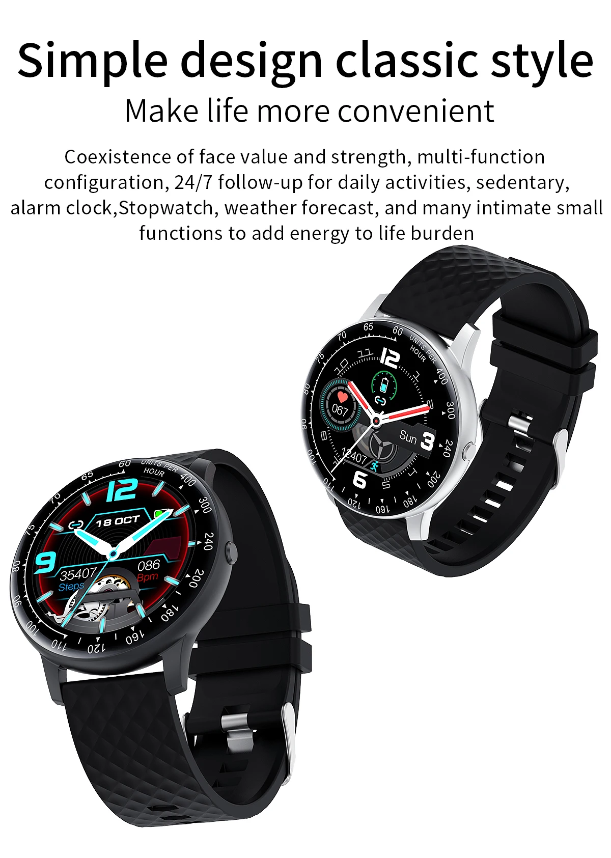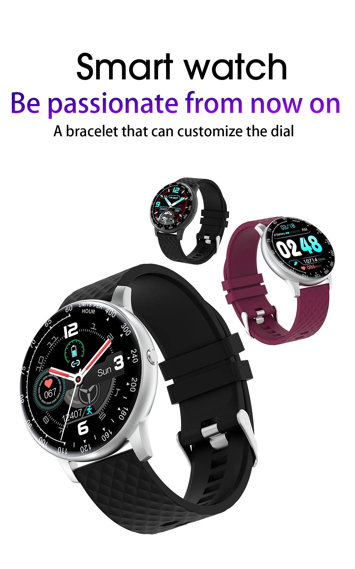 • Smart Watch Full Touch DIY Watchfaces Outdoor Sport Watches Fitness Tracker Smartwatch for Android Ios IP68 Waterproof