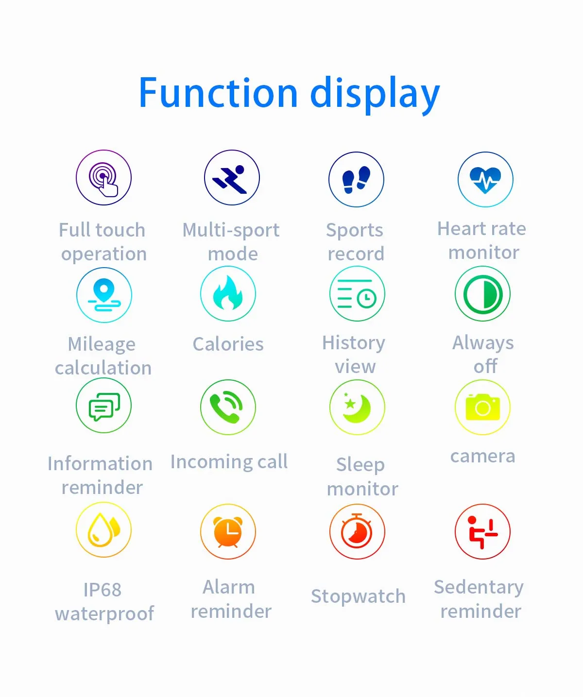 Other Functions: Alarm clock ,Sedentary reminder,Camera remote control,Anti-lost